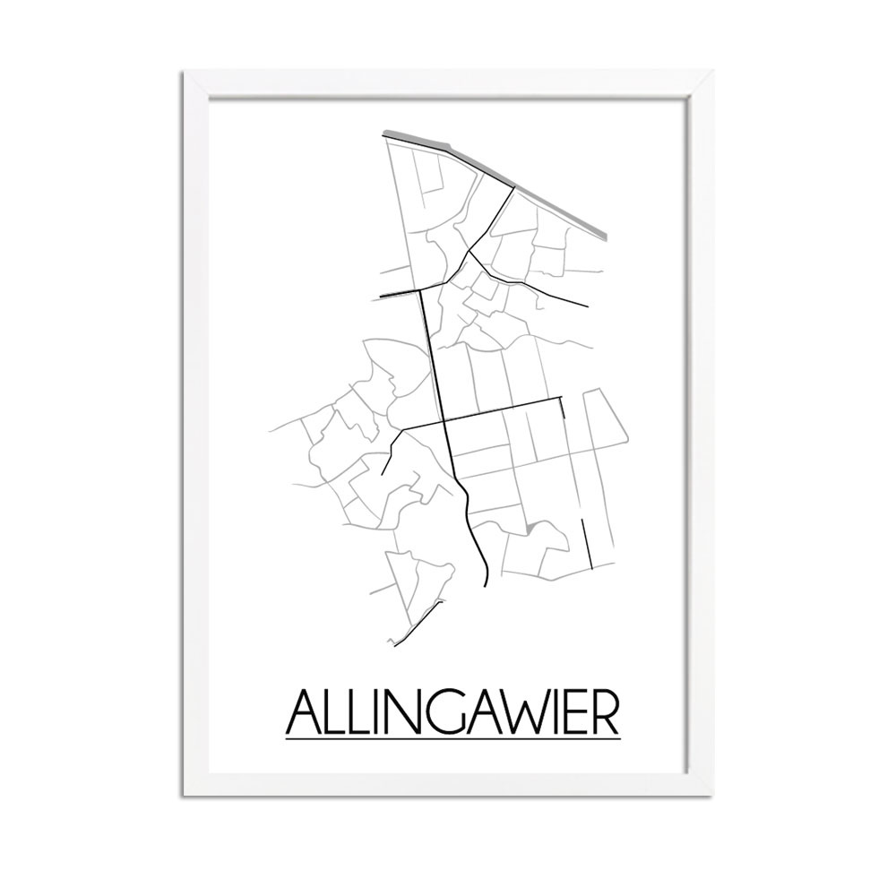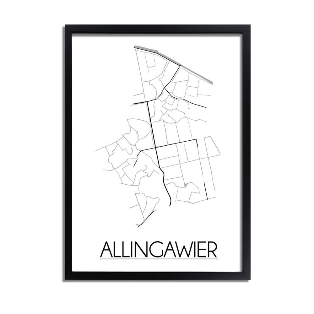 Der Innenraum kann farbig, neutral oder kontrastreich gestaltet werden. Es gibt unzählige Einrichtungsstile, aus denen wir wählen können. Welchen Stil Sie auch immer für den Urlaub wählen, ein Innenplakat einer Stadt oder eines Landes wird immer passen. Ein Plakat ist eine schöne Ergänzung des Interieurs und sorgt für eine schöne Wirkung und einen Blickfang im Raum. Dieses Stadtplan-poster von Allingawier ist eine attraktive Wanddekoration zum Aufhängen in einem Rahmen neben anderen Wanddekorationen.