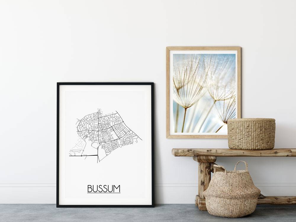 Der Innenraum kann farbig, neutral oder kontrastreich gestaltet werden. Es gibt unzählige Einrichtungsstile, aus denen wir wählen können. Welchen Stil Sie auch immer für den Urlaub wählen, ein Innenplakat einer Stadt oder eines Landes wird immer passen. Ein Plakat ist eine schöne Ergänzung des Interieurs und sorgt für eine schöne Wirkung und einen Blickfang im Raum. Dieses Stadtplan-poster von Bussum ist eine attraktive Wanddekoration zum Aufhängen in einem Rahmen neben anderen Wanddekorationen.
