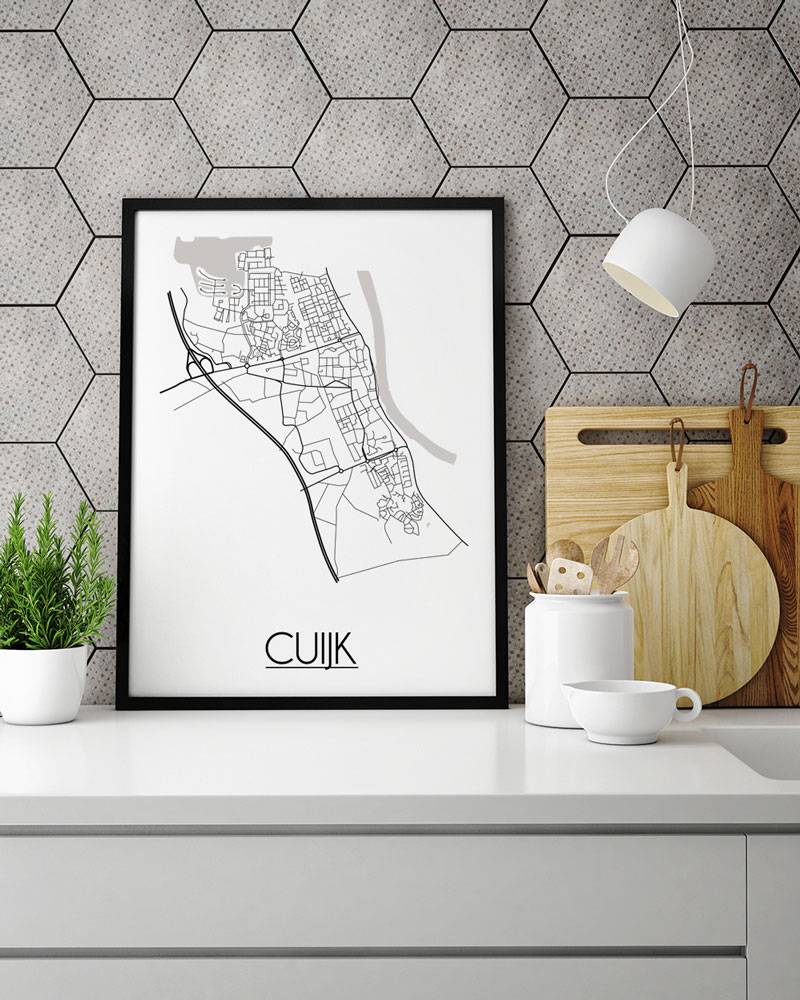 Der Innenraum kann farbig, neutral oder kontrastreich gestaltet werden. Es gibt unzählige Einrichtungsstile, aus denen wir wählen können. Welchen Stil Sie auch immer für den Urlaub wählen, ein Innenplakat einer Stadt oder eines Landes wird immer passen. Ein Plakat ist eine schöne Ergänzung des Interieurs und sorgt für eine schöne Wirkung und einen Blickfang im Raum. Dieses Stadtplan-poster von Cuijk ist eine attraktive Wanddekoration zum Aufhängen in einem Rahmen neben anderen Wanddekorationen.