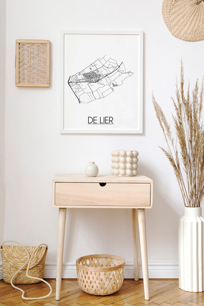 Der Innenraum kann farbig, neutral oder kontrastreich gestaltet werden. Es gibt unzählige Einrichtungsstile, aus denen wir wählen können. Welchen Stil Sie auch immer für den Urlaub wählen, ein Innenplakat einer Stadt oder eines Landes wird immer passen. Ein Plakat ist eine schöne Ergänzung des Interieurs und sorgt für eine schöne Wirkung und einen Blickfang im Raum. Dieses Stadtplan-poster von De Lier ist eine attraktive Wanddekoration zum Aufhängen in einem Rahmen neben anderen Wanddekorationen.