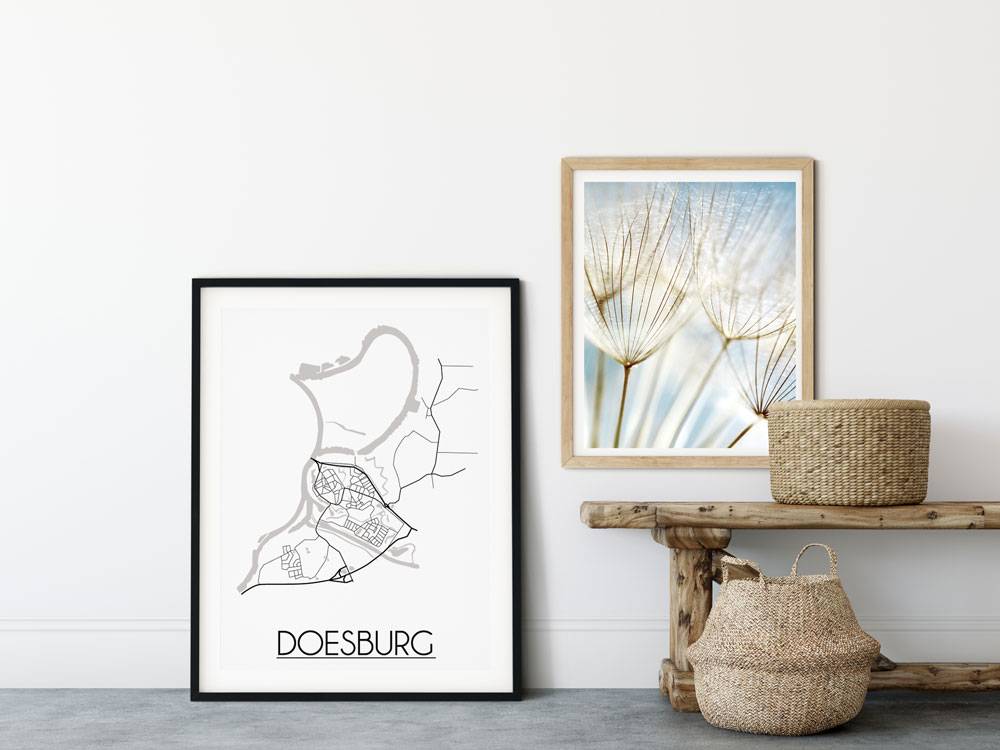 Der Innenraum kann farbig, neutral oder kontrastreich gestaltet werden. Es gibt unzählige Einrichtungsstile, aus denen wir wählen können. Welchen Stil Sie auch immer für den Urlaub wählen, ein Innenplakat einer Stadt oder eines Landes wird immer passen. Ein Plakat ist eine schöne Ergänzung des Interieurs und sorgt für eine schöne Wirkung und einen Blickfang im Raum. Dieses Stadtplan-poster von Doesburg ist eine attraktive Wanddekoration zum Aufhängen in einem Rahmen neben anderen Wanddekorationen.