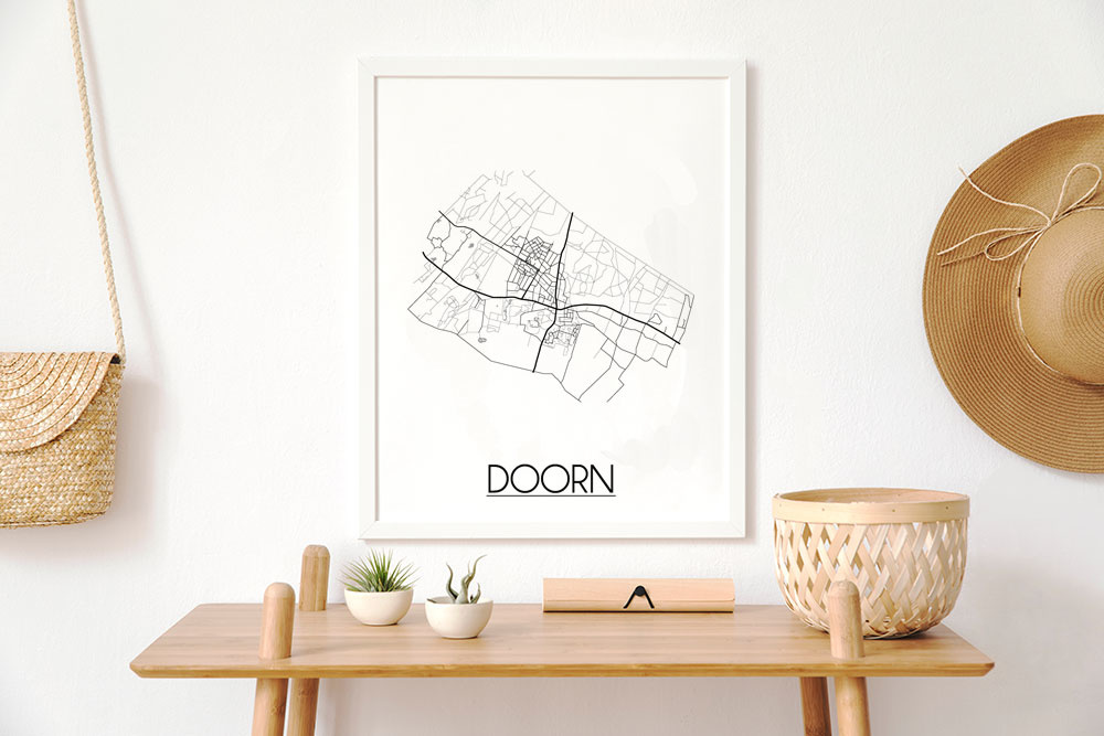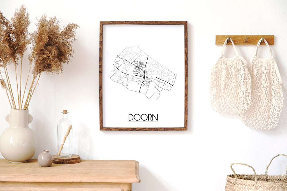 Der Innenraum kann farbig, neutral oder kontrastreich gestaltet werden. Es gibt unzählige Einrichtungsstile, aus denen wir wählen können. Welchen Stil Sie auch immer für den Urlaub wählen, ein Innenplakat einer Stadt oder eines Landes wird immer passen. Ein Plakat ist eine schöne Ergänzung des Interieurs und sorgt für eine schöne Wirkung und einen Blickfang im Raum. Dieses Stadtplan-poster von Doorn ist eine attraktive Wanddekoration zum Aufhängen in einem Rahmen neben anderen Wanddekorationen.