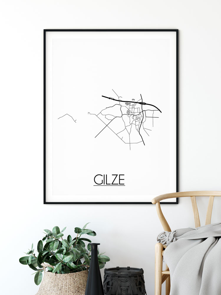 Der Innenraum kann farbig, neutral oder kontrastreich gestaltet werden. Es gibt unzählige Einrichtungsstile, aus denen wir wählen können. Welchen Stil Sie auch immer für den Urlaub wählen, ein Innenplakat einer Stadt oder eines Landes wird immer passen. Ein Plakat ist eine schöne Ergänzung des Interieurs und sorgt für eine schöne Wirkung und einen Blickfang im Raum. Dieses Stadtplan-poster von Gilze ist eine attraktive Wanddekoration zum Aufhängen in einem Rahmen neben anderen Wanddekorationen.