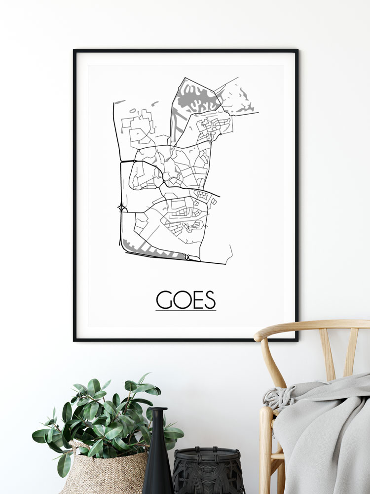 Der Innenraum kann farbig, neutral oder kontrastreich gestaltet werden. Es gibt unzählige Einrichtungsstile, aus denen wir wählen können. Welchen Stil Sie auch immer für den Urlaub wählen, ein Innenplakat einer Stadt oder eines Landes wird immer passen. Ein Plakat ist eine schöne Ergänzung des Interieurs und sorgt für eine schöne Wirkung und einen Blickfang im Raum. Dieses Stadtplan-poster von Goes ist eine attraktive Wanddekoration zum Aufhängen in einem Rahmen neben anderen Wanddekorationen.