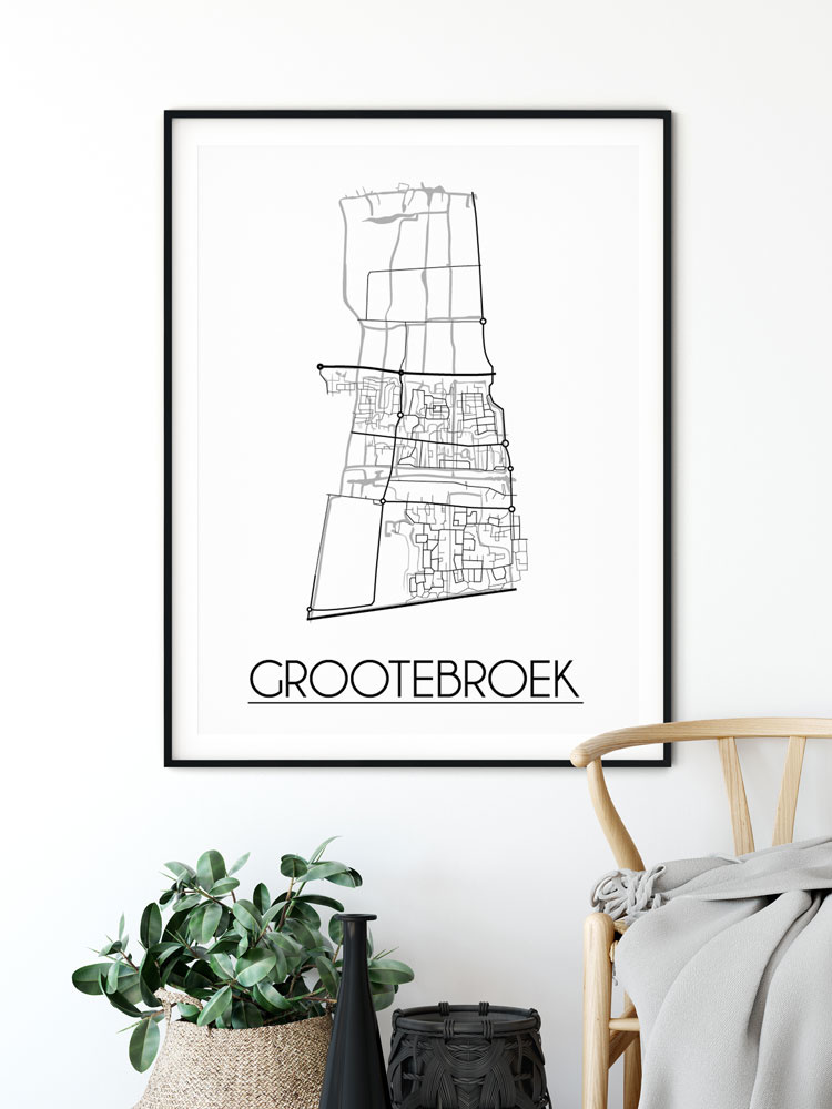 Der Innenraum kann farbig, neutral oder kontrastreich gestaltet werden. Es gibt unzählige Einrichtungsstile, aus denen wir wählen können. Welchen Stil Sie auch immer für den Urlaub wählen, ein Innenplakat einer Stadt oder eines Landes wird immer passen. Ein Plakat ist eine schöne Ergänzung des Interieurs und sorgt für eine schöne Wirkung und einen Blickfang im Raum. Dieses Stadtplan-poster von Grootebroek ist eine attraktive Wanddekoration zum Aufhängen in einem Rahmen neben anderen Wanddekorationen.
