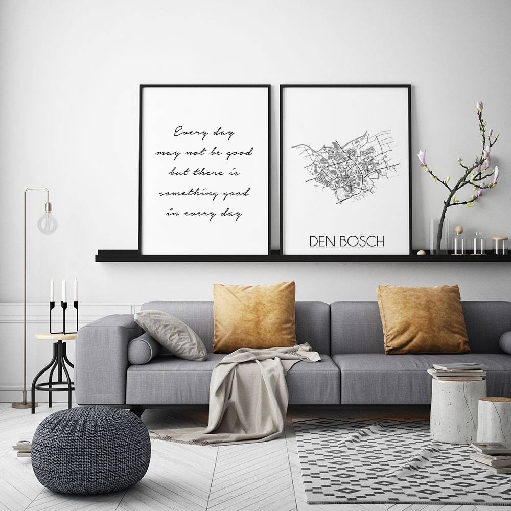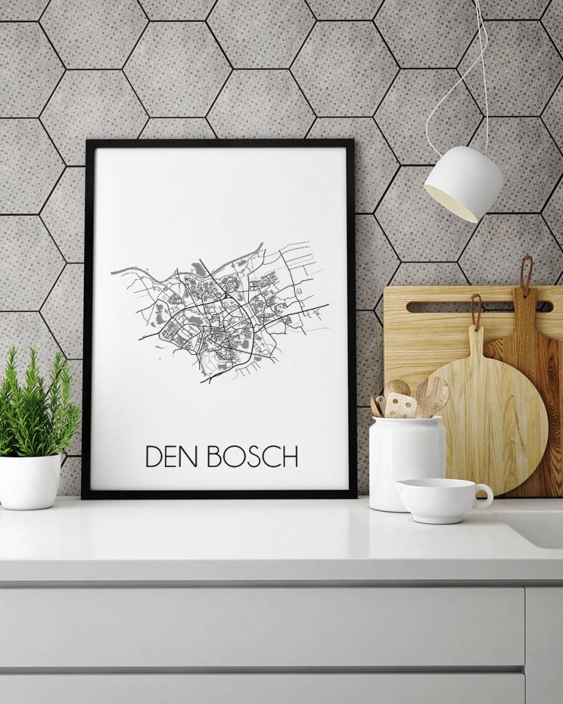 Der Innenraum kann farbig, neutral oder kontrastreich gestaltet werden. Es gibt unzählige Einrichtungsstile, aus denen wir wählen können. Welchen Stil Sie auch immer für den Urlaub wählen, ein Innenplakat einer Stadt oder eines Landes wird immer passen. Ein Plakat ist eine schöne Ergänzung des Interieurs und sorgt für eine schöne Wirkung und einen Blickfang im Raum. Dieses Stadtplanposter von Den Bosch ist eine attraktive Wanddekoration zum Aufhängen in einem Rahmen neben anderen Wanddekorationen.