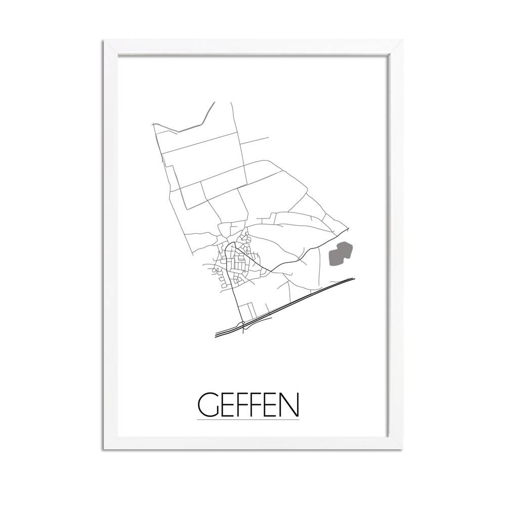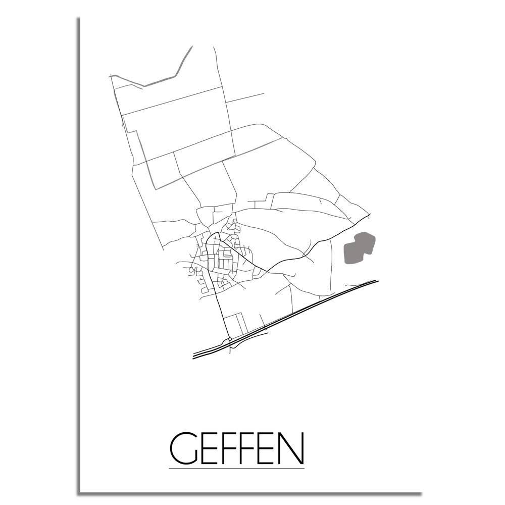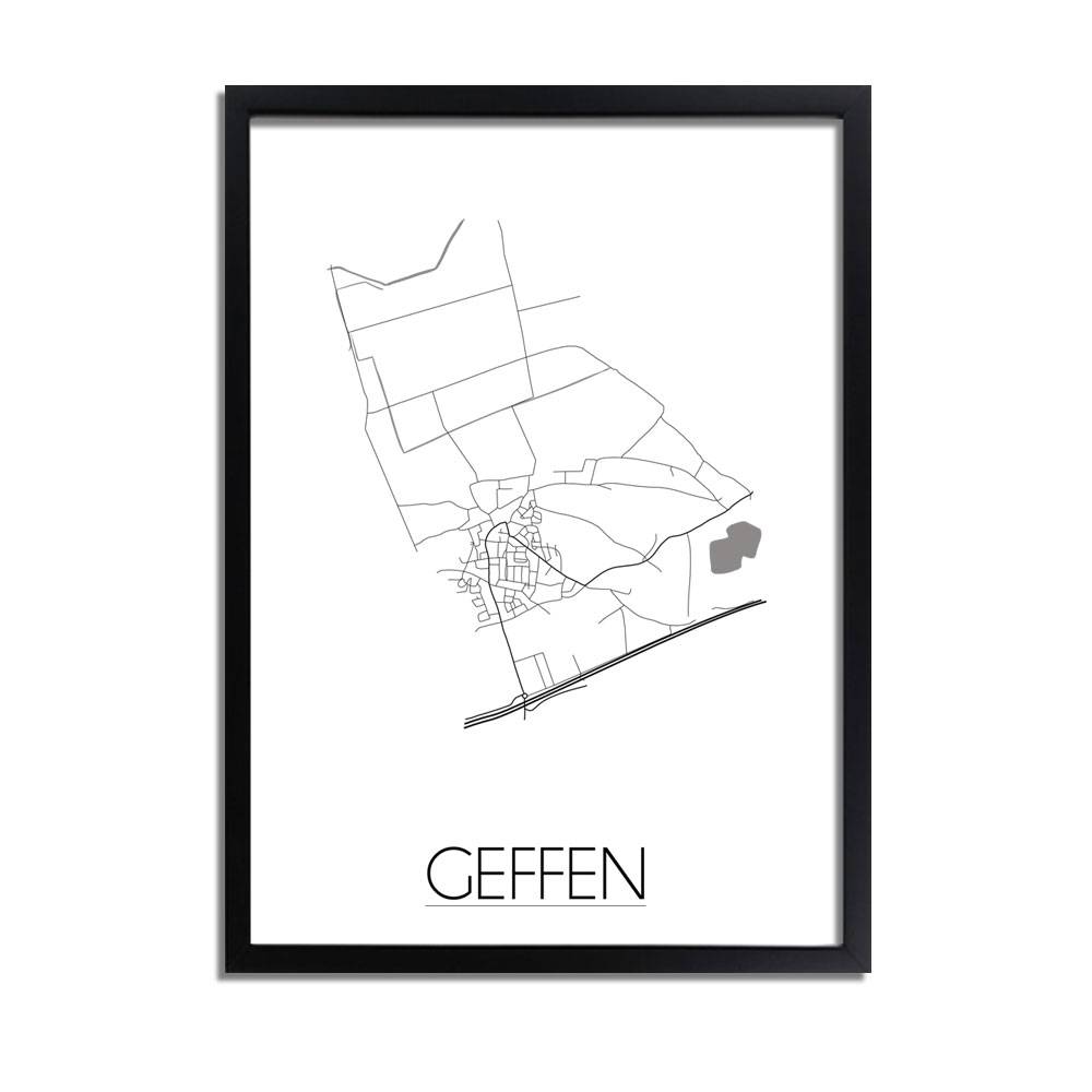 Grundriss Stadtplan Geffen plakat - Schwarz Weiß Grau