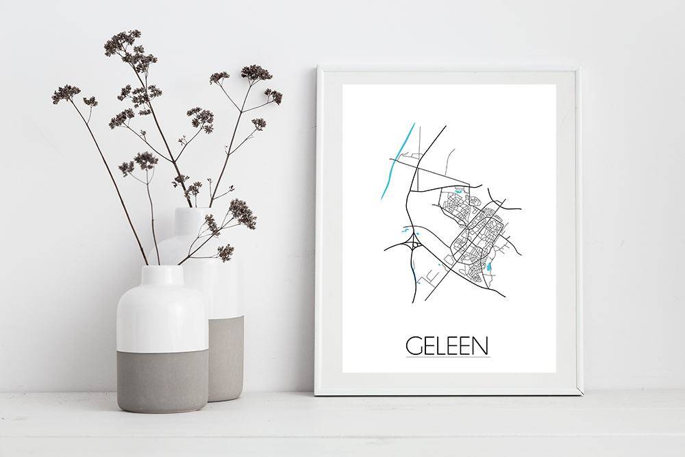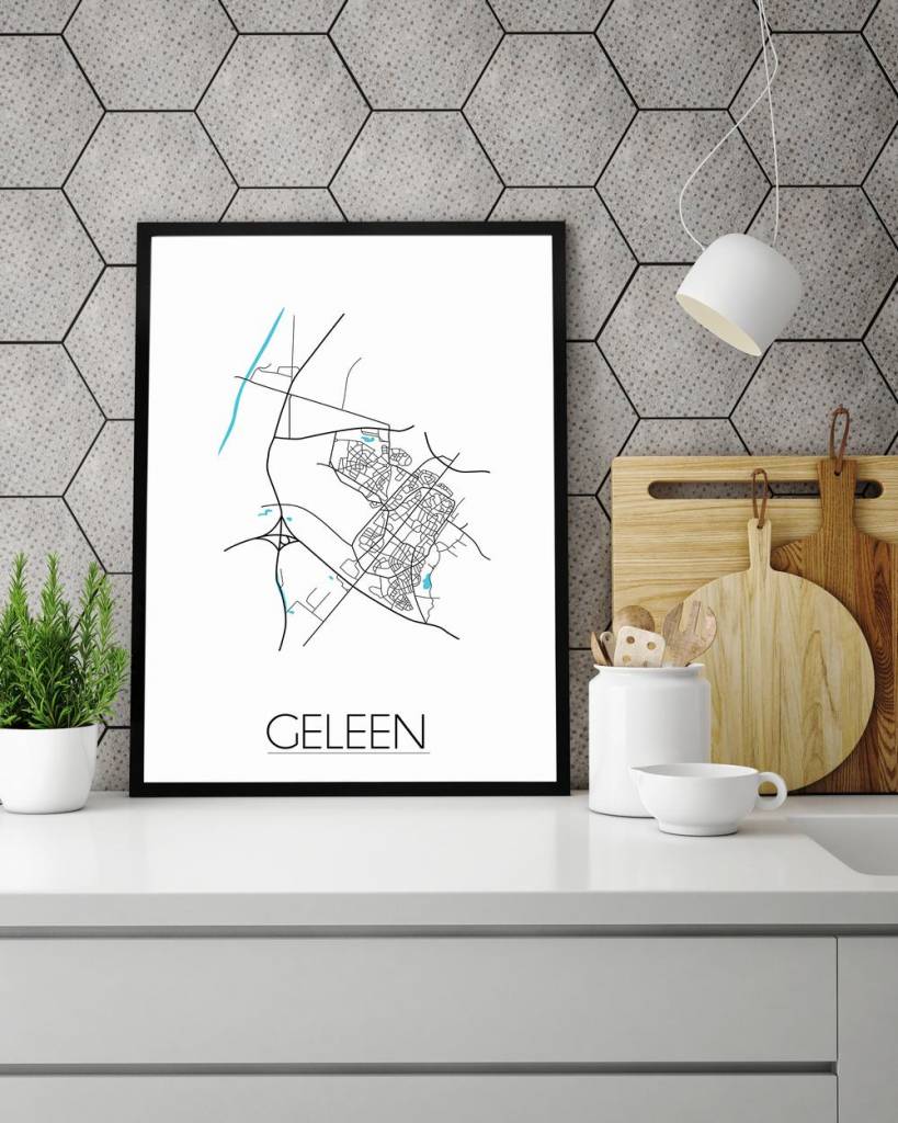 Der Innenraum kann farbig, neutral oder kontrastreich gestaltet werden. Es gibt unzählige Einrichtungsstile, aus denen wir wählen können. Welchen Stil Sie auch immer für den Urlaub wählen, ein Innenplakat einer Stadt oder eines Landes wird immer passen. Ein Plakat ist eine schöne Ergänzung des Interieurs und sorgt für eine schöne Wirkung und einen Blickfang im Raum. Dieses Stadtplanposter von Geleen ist eine attraktive Wanddekoration zum Aufhängen in einem Rahmen neben anderen Wanddekorationen.