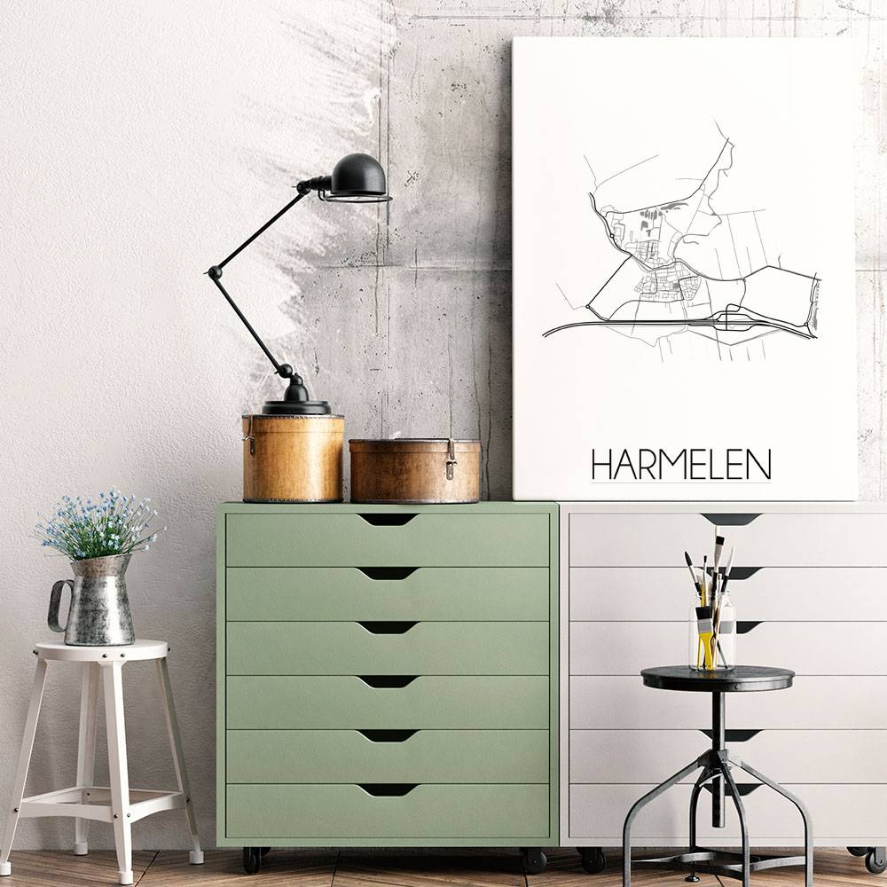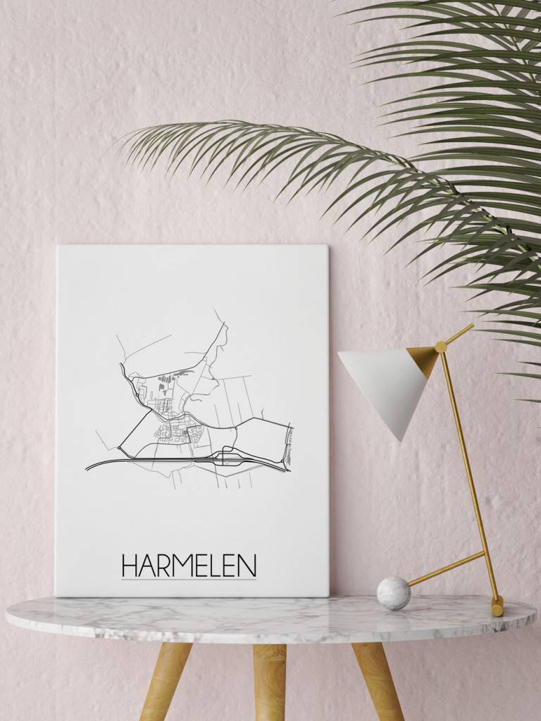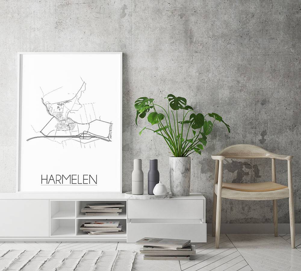 Der Innenraum kann farbig, neutral oder kontrastreich gestaltet werden. Es gibt unzählige Einrichtungsstile, aus denen wir wählen können. Welchen Stil Sie auch immer für den Urlaub wählen, ein Innenplakat einer Stadt oder eines Landes wird immer passen. Ein Plakat ist eine schöne Ergänzung des Interieurs und sorgt für eine schöne Wirkung und einen Blickfang im Raum. Dieses Stadtplanposter von Harmelen ist eine attraktive Wanddekoration zum Aufhängen in einem Rahmen neben anderen Wanddekorationen.