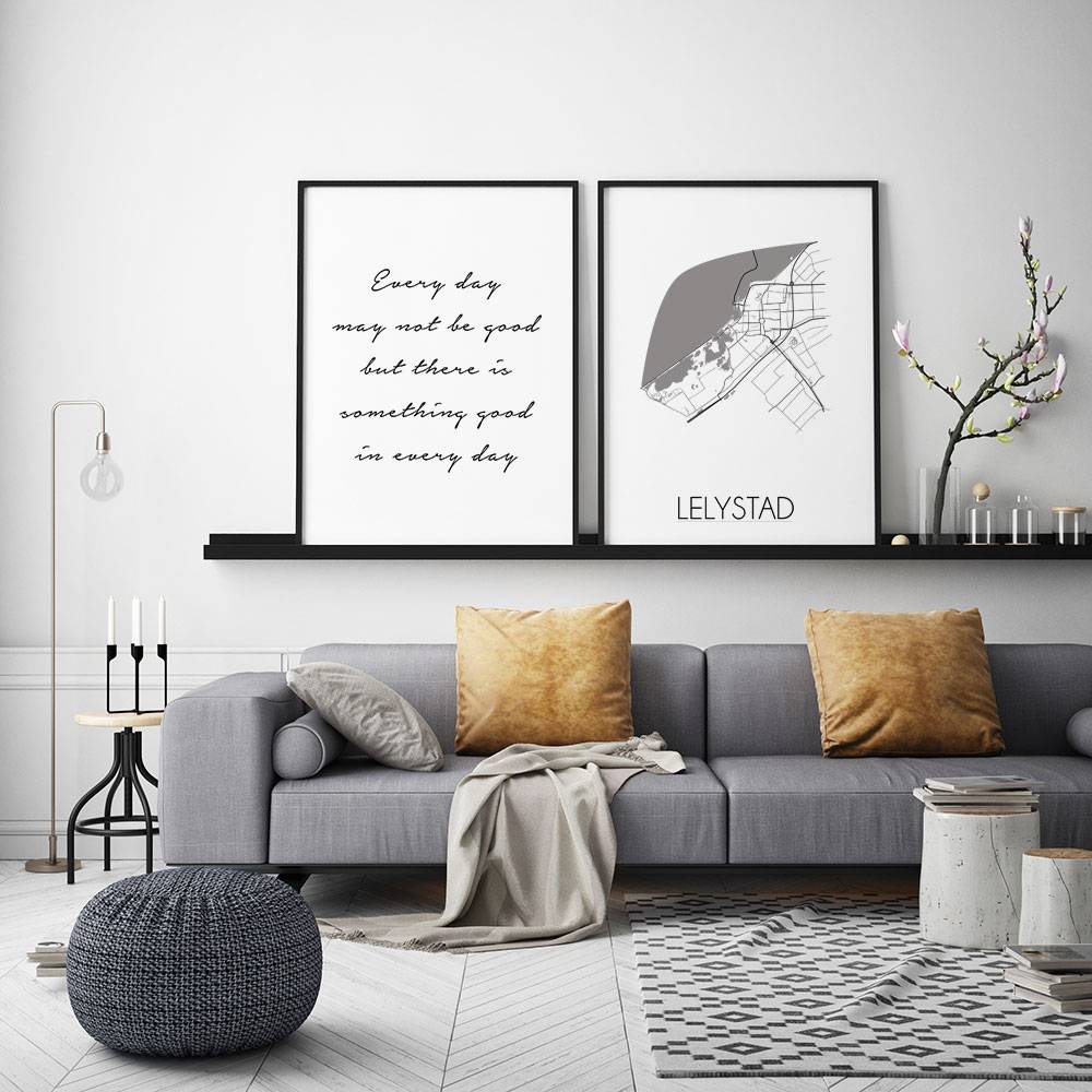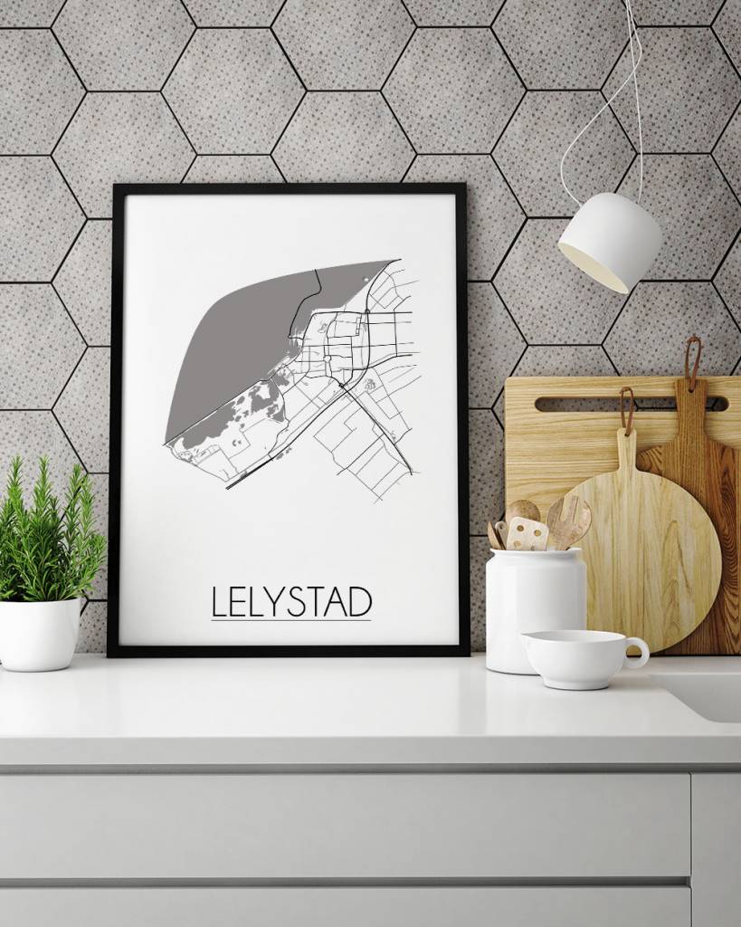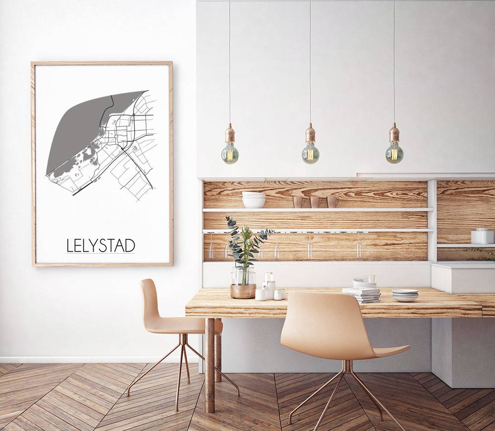 Der Innenraum kann farbig, neutral oder kontrastreich gestaltet werden. Es gibt unzählige Einrichtungsstile, aus denen wir wählen können. Welchen Stil Sie auch immer für den Urlaub wählen, ein Innenplakat einer Stadt oder eines Landes wird immer passen. Ein Plakat ist eine schöne Ergänzung des Interieurs und sorgt für eine schöne Wirkung und einen Blickfang im Raum. Dieses Stadtplanposter von Lelystad ist eine attraktive Wanddekoration zum Aufhängen in einem Rahmen neben anderen Wanddekorationen.