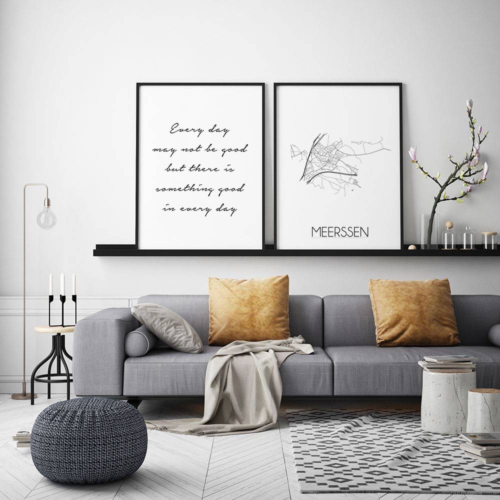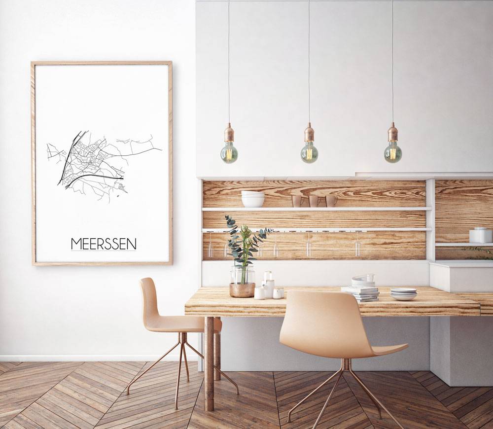 Der Innenraum kann farbig, neutral oder kontrastreich gestaltet werden. Es gibt unzählige Einrichtungsstile, aus denen wir wählen können. Welchen Stil Sie auch immer für den Urlaub wählen, ein Innenplakat einer Stadt oder eines Landes wird immer passen. Ein Plakat ist eine schöne Ergänzung des Interieurs und sorgt für eine schöne Wirkung und einen Blickfang im Raum. Dieses Stadtplanposter von Meerssen ist eine attraktive Wanddekoration zum Aufhängen in einem Rahmen neben anderen Wanddekorationen.