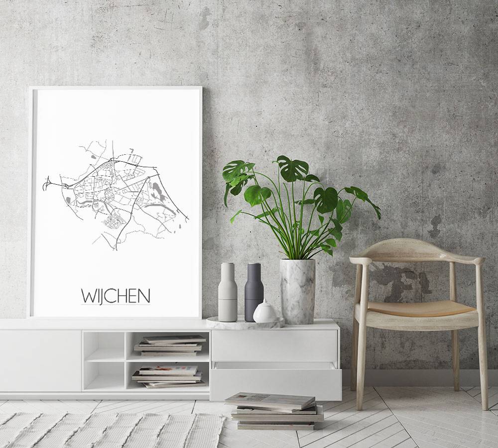 Der Innenraum kann farbig, neutral oder kontrastreich gestaltet werden. Es gibt unzählige Einrichtungsstile, aus denen wir wählen können. Welchen Stil Sie auch immer für den Urlaub wählen, ein Innenplakat einer Stadt oder eines Landes wird immer passen. Ein Plakat ist eine schöne Ergänzung des Interieurs und sorgt für eine schöne Wirkung und einen Blickfang im Raum. Dieses Stadtplanposter von Wijchen ist eine attraktive Wanddekoration zum Aufhängen in einem Rahmen neben anderen Wanddekorationen.
