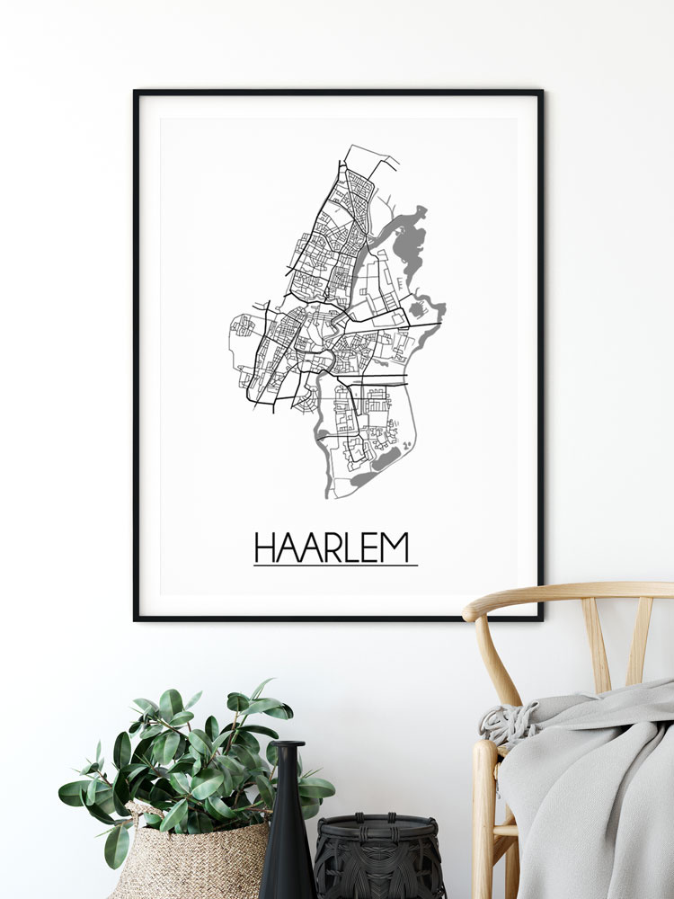 Der Innenraum kann farbig, neutral oder kontrastreich gestaltet werden. Es gibt unzählige Einrichtungsstile, aus denen wir wählen können. Welchen Stil Sie auch immer für den Urlaub wählen, ein Innenplakat einer Stadt oder eines Landes wird immer passen. Ein Plakat ist eine schöne Ergänzung des Interieurs und sorgt für eine schöne Wirkung und einen Blickfang im Raum. Dieses Stadtplan-poster von Haarlem ist eine attraktive Wanddekoration zum Aufhängen in einem Rahmen neben anderen Wanddekorationen.