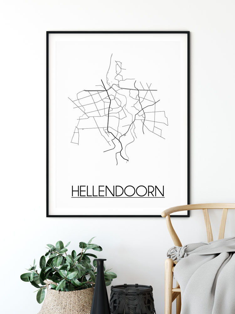 Der Innenraum kann farbig, neutral oder kontrastreich gestaltet werden. Es gibt unzählige Einrichtungsstile, aus denen wir wählen können. Welchen Stil Sie auch immer für den Urlaub wählen, ein Innenplakat einer Stadt oder eines Landes wird immer passen. Ein Plakat ist eine schöne Ergänzung des Interieurs und sorgt für eine schöne Wirkung und einen Blickfang im Raum. Dieses Stadtplan-poster von Hellendoorn ist eine attraktive Wanddekoration zum Aufhängen in einem Rahmen neben anderen Wanddekorationen.