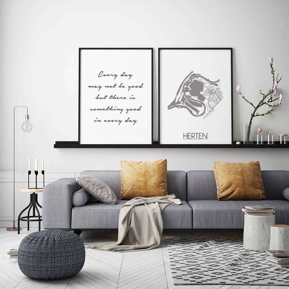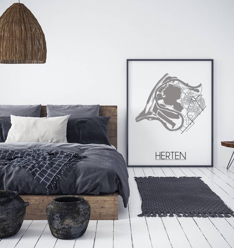 Der Innenraum kann bunt, neutral oder kontrastreich sein. Es gibt unzählige Einrichtungsstile, aus denen wir wählen können. Welchen Stil Sie auch immer für das Interieur wählen, ein Innenposter einer Stadt oder eines Landes passt immer. Ein Poster ist eine schöne Ergänzung zum Interieur und sorgt für einen schönen Effekt und einen Blickfang im Raum. Dieses Stadtplanposter von Herten ist eine attraktive Wanddekoration, die in einem Rahmen neben anderen Wanddekorationen hängt.