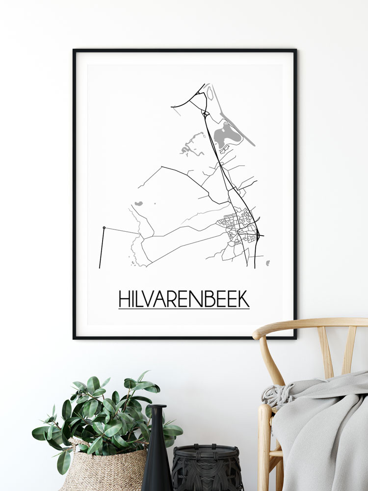 Der Innenraum kann farbig, neutral oder kontrastreich gestaltet werden. Es gibt unzählige Einrichtungsstile, aus denen wir wählen können. Welchen Stil Sie auch immer für den Urlaub wählen, ein Innenplakat einer Stadt oder eines Landes wird immer passen. Ein Plakat ist eine schöne Ergänzung des Interieurs und sorgt für eine schöne Wirkung und einen Blickfang im Raum. Dieses Stadtplan-poster von Hilvarenbeek ist eine attraktive Wanddekoration zum Aufhängen in einem Rahmen neben anderen Wanddekorationen.