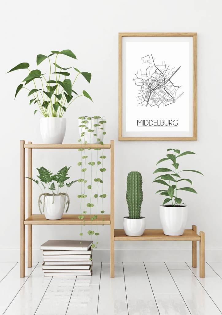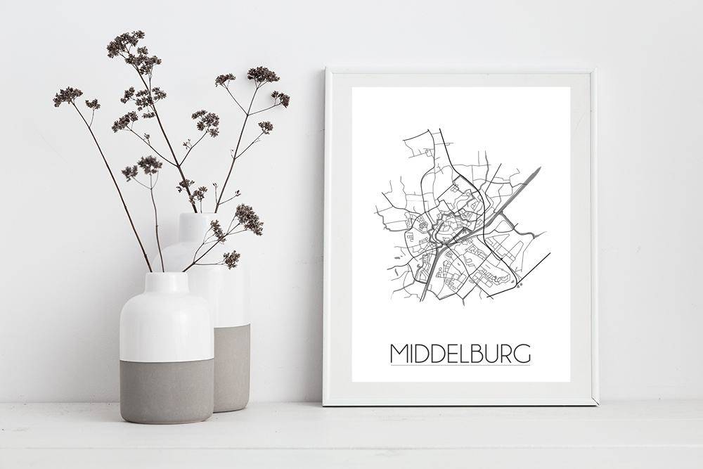 Der Innenraum kann farbig, neutral oder kontrastreich gestaltet werden. Es gibt unzählige Einrichtungsstile, aus denen wir wählen können. Welchen Stil Sie auch wählen, ein Innenplakat einer Stadt oder eines Landes passt. Ein Plakat ist eine schöne Ergänzung des Interieurs und sorgt für eine schöne Wirkung und einen Blickfang im Raum. Dieses Stadtplanposter von Middelburg ist eine attraktive Wanddekoration zum Aufhängen in einem Rahmen neben anderen Wanddekorationen.