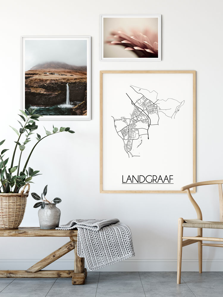 Der Innenraum kann farbig, neutral oder kontrastreich gestaltet werden. Es gibt unzählige Einrichtungsstile, aus denen wir wählen können. Welchen Stil Sie auch immer für den Urlaub wählen, ein Innenplakat einer Stadt oder eines Landes wird immer passen. Ein Plakat ist eine schöne Ergänzung des Interieurs und sorgt für eine schöne Wirkung und einen Blickfang im Raum. Dieses Stadtplan-poster von Landgraaf ist eine attraktive Wanddekoration zum Aufhängen in einem Rahmen neben anderen Wanddekorationen.