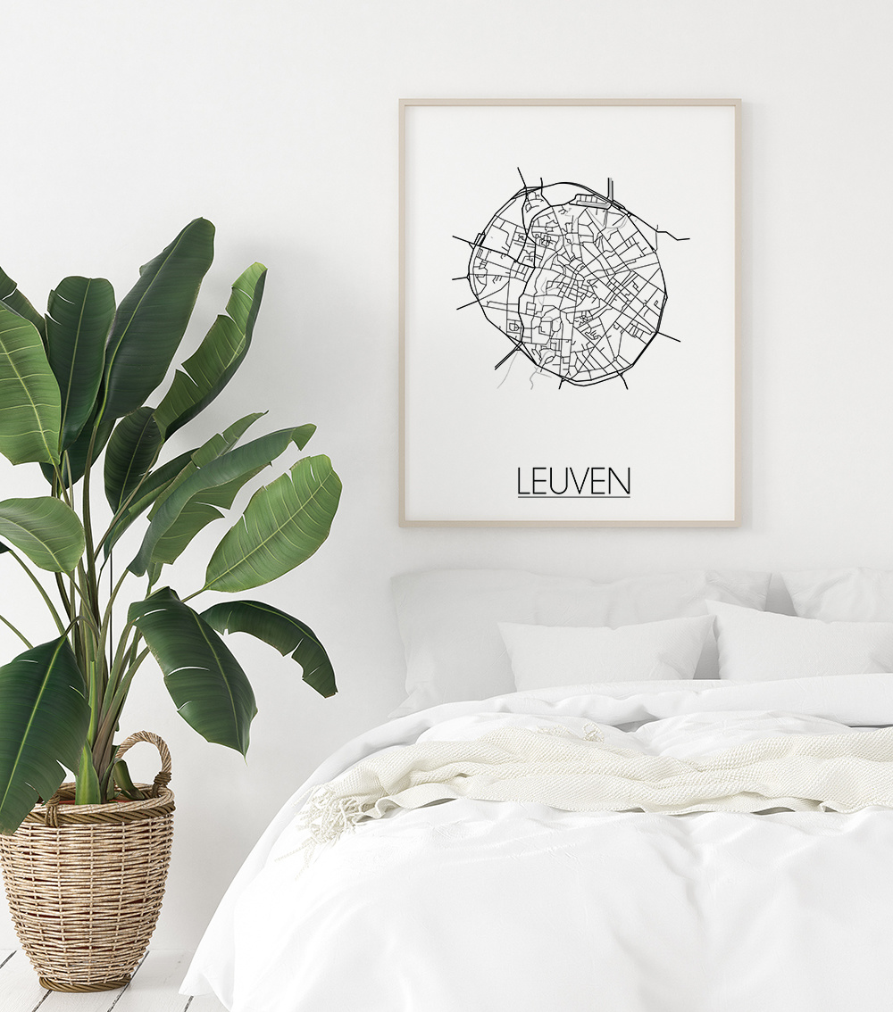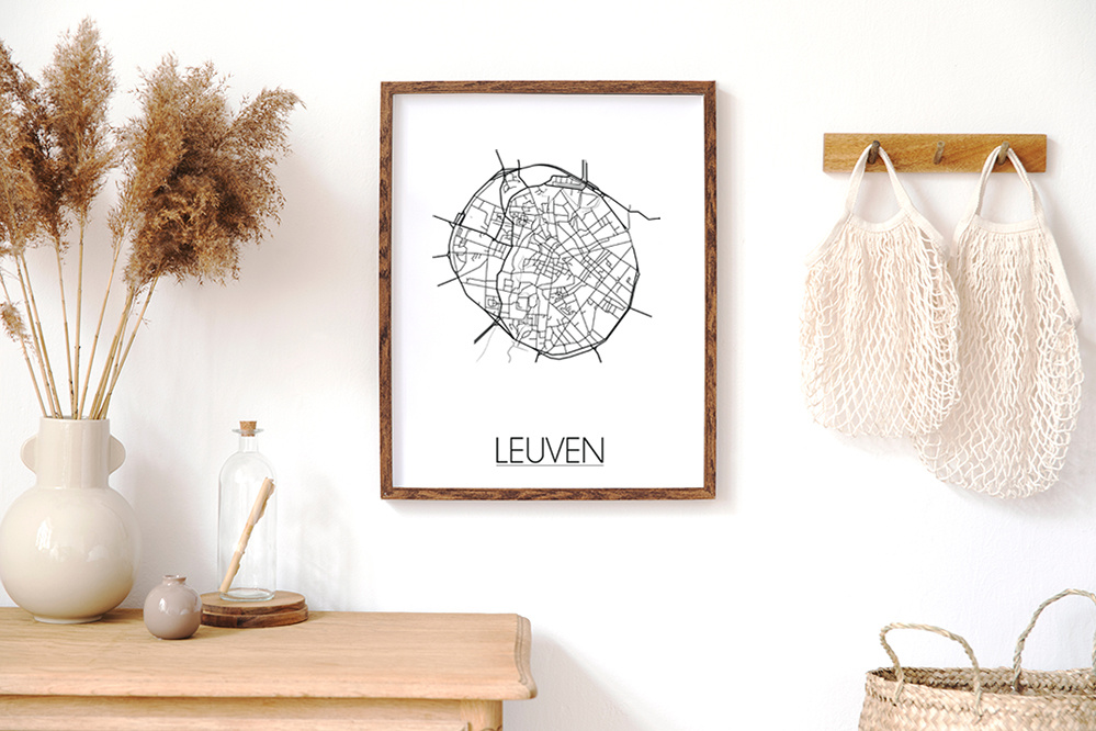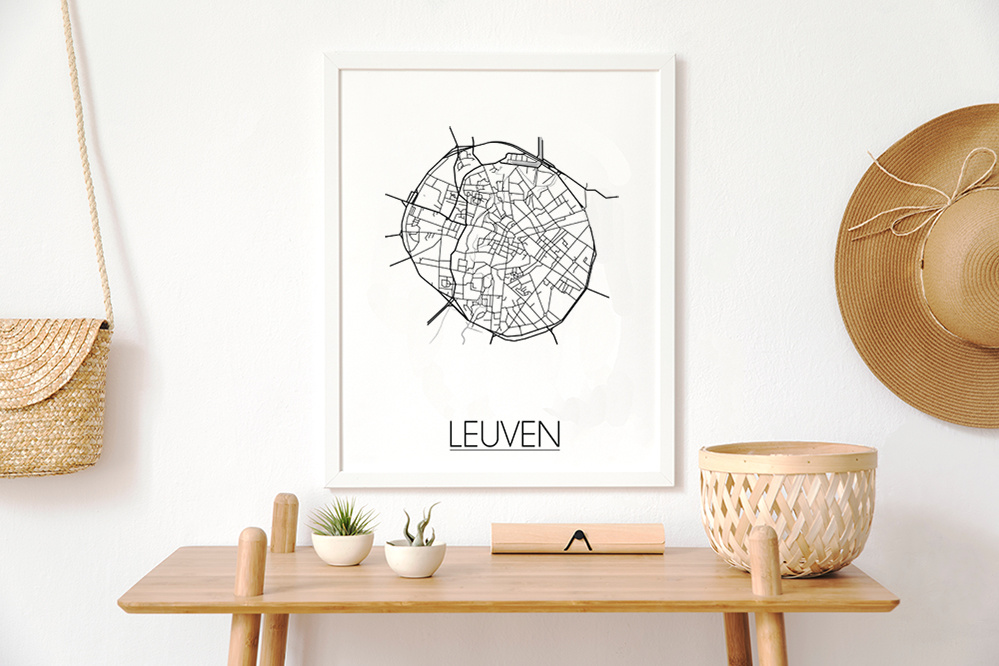 Der Innenraum kann farbig, neutral oder kontrastreich gestaltet werden. Es gibt unzählige Einrichtungsstile, aus denen wir wählen können. Welchen Stil Sie auch immer für den Urlaub wählen, ein Innenplakat einer Stadt oder eines Landes wird immer passen. Ein Plakat ist eine schöne Ergänzung des Interieurs und sorgt für eine schöne Wirkung und einen Blickfang im Raum. Dieses Stadtplan-poster von Leuven ist eine attraktive Wanddekoration zum Aufhängen in einem Rahmen neben anderen Wanddekorationen.