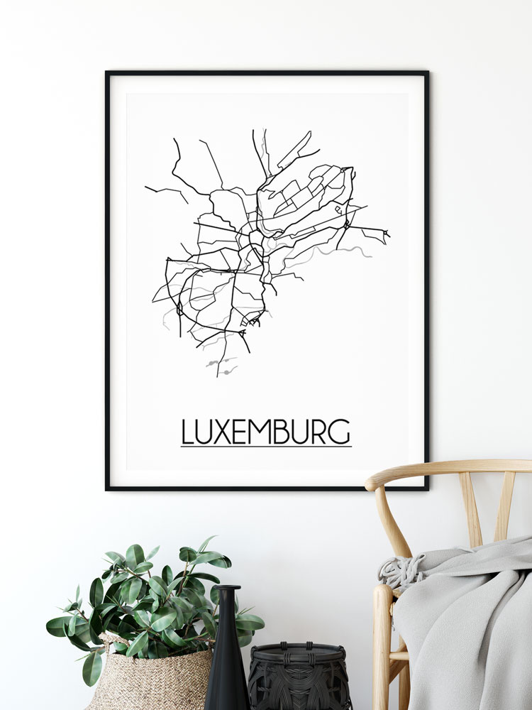 Der Innenraum kann farbig, neutral oder kontrastreich gestaltet werden. Es gibt unzählige Einrichtungsstile, aus denen wir wählen können. Welchen Stil Sie auch immer für den Urlaub wählen, ein Innenplakat einer Stadt oder eines Landes wird immer passen. Ein Plakat ist eine schöne Ergänzung des Interieurs und sorgt für eine schöne Wirkung und einen Blickfang im Raum. Dieses Stadtplan-poster von Luxemburg ist eine attraktive Wanddekoration zum Aufhängen in einem Rahmen neben anderen Wanddekorationen.