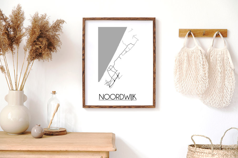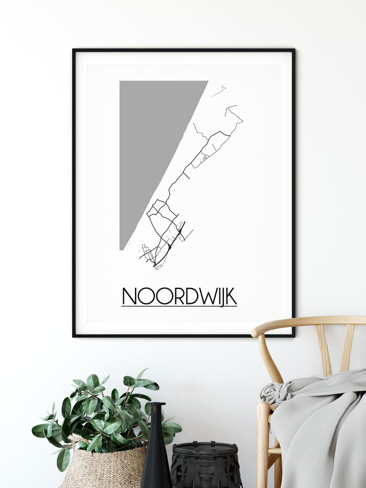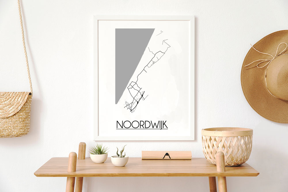 Der Innenraum kann farbig, neutral oder kontrastreich gestaltet werden. Es gibt unzählige Einrichtungsstile, aus denen wir wählen können. Welchen Stil Sie auch immer für den Urlaub wählen, ein Innenplakat einer Stadt oder eines Landes wird immer passen. Ein Plakat ist eine schöne Ergänzung des Interieurs und sorgt für eine schöne Wirkung und einen Blickfang im Raum. Dieses Stadtplan-poster von Noordwijk ist eine attraktive Wanddekoration zum Aufhängen in einem Rahmen neben anderen Wanddekorationen.