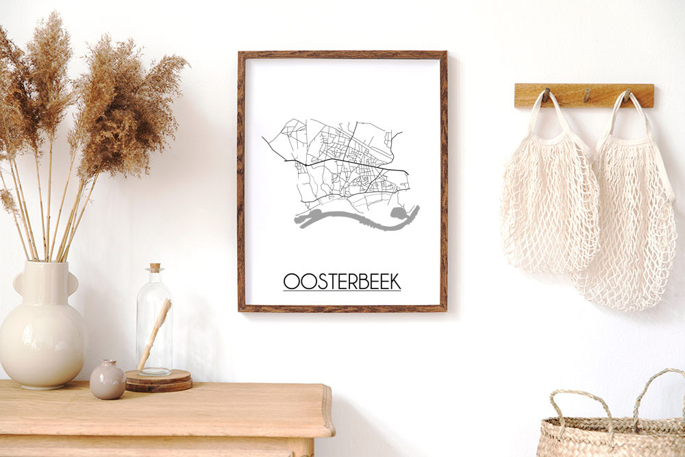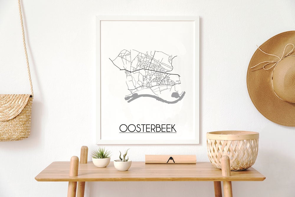 Der Innenraum kann farbig, neutral oder kontrastreich gestaltet werden. Es gibt unzählige Einrichtungsstile, aus denen wir wählen können. Welchen Stil Sie auch immer für den Urlaub wählen, ein Innenplakat einer Stadt oder eines Landes wird immer passen. Ein Plakat ist eine schöne Ergänzung des Interieurs und sorgt für eine schöne Wirkung und einen Blickfang im Raum. Dieses Stadtplan-poster von Oosterbeek ist eine attraktive Wanddekoration zum Aufhängen in einem Rahmen neben anderen Wanddekorationen.