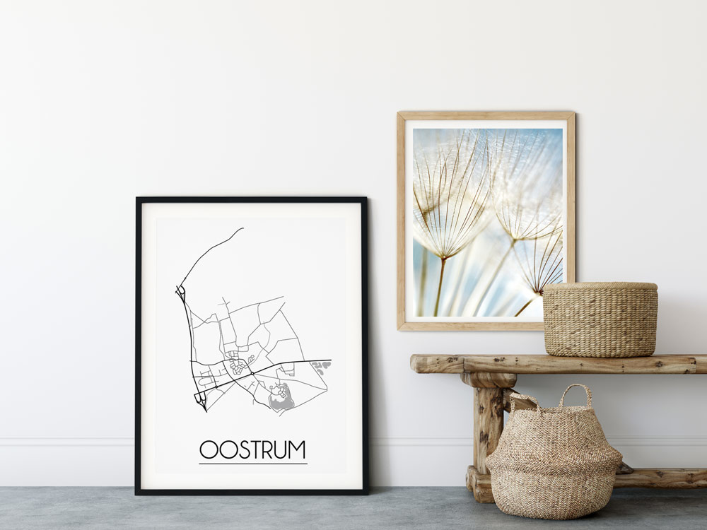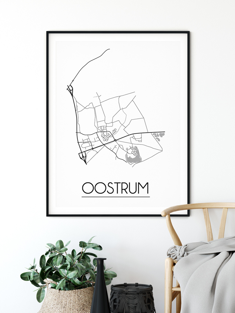 Der Innenraum kann farbig, neutral oder kontrastreich gestaltet werden. Es gibt unzählige Einrichtungsstile, aus denen wir wählen können. Welchen Stil Sie auch immer für den Urlaub wählen, ein Innenplakat einer Stadt oder eines Landes wird immer passen. Ein Plakat ist eine schöne Ergänzung des Interieurs und sorgt für eine schöne Wirkung und einen Blickfang im Raum. Dieses Stadtplan-poster von Oostrum ist eine attraktive Wanddekoration zum Aufhängen in einem Rahmen neben anderen Wanddekorationen.