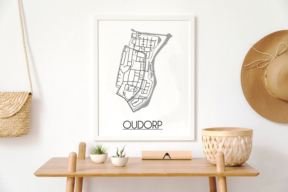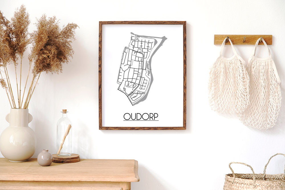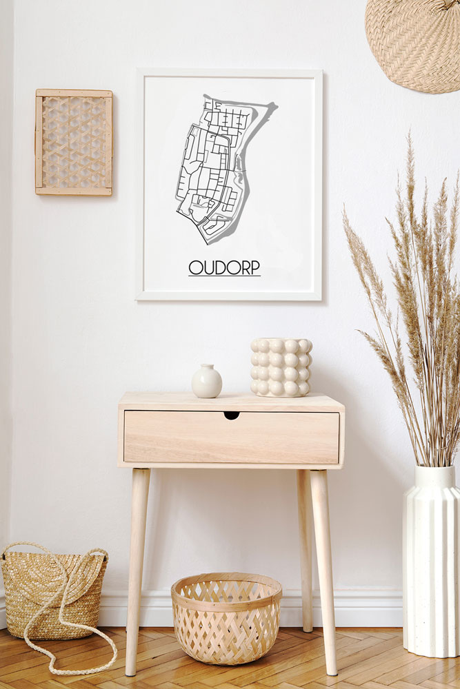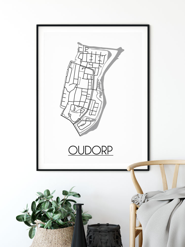 Der Innenraum kann farbig, neutral oder kontrastreich gestaltet werden. Es gibt unzählige Einrichtungsstile, aus denen wir wählen können. Welchen Stil Sie auch immer für den Urlaub wählen, ein Innenplakat einer Stadt oder eines Landes wird immer passen. Ein Plakat ist eine schöne Ergänzung des Interieurs und sorgt für eine schöne Wirkung und einen Blickfang im Raum. Dieses Stadtplan-poster von Oudorp ist eine attraktive Wanddekoration zum Aufhängen in einem Rahmen neben anderen Wanddekorationen.