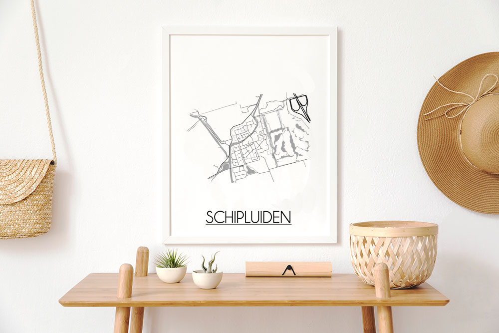 Der Innenraum kann farbig, neutral oder kontrastreich gestaltet werden. Es gibt unzählige Einrichtungsstile, aus denen wir wählen können. Welchen Stil Sie auch immer für den Urlaub wählen, ein Innenplakat einer Stadt oder eines Landes wird immer passen. Ein Plakat ist eine schöne Ergänzung des Interieurs und sorgt für eine schöne Wirkung und einen Blickfang im Raum. Dieses Stadtplan-poster von Schipluiden ist eine attraktive Wanddekoration zum Aufhängen in einem Rahmen neben anderen Wanddekorationen.