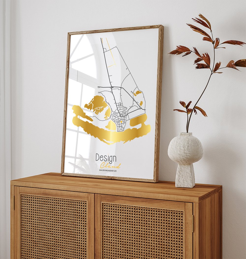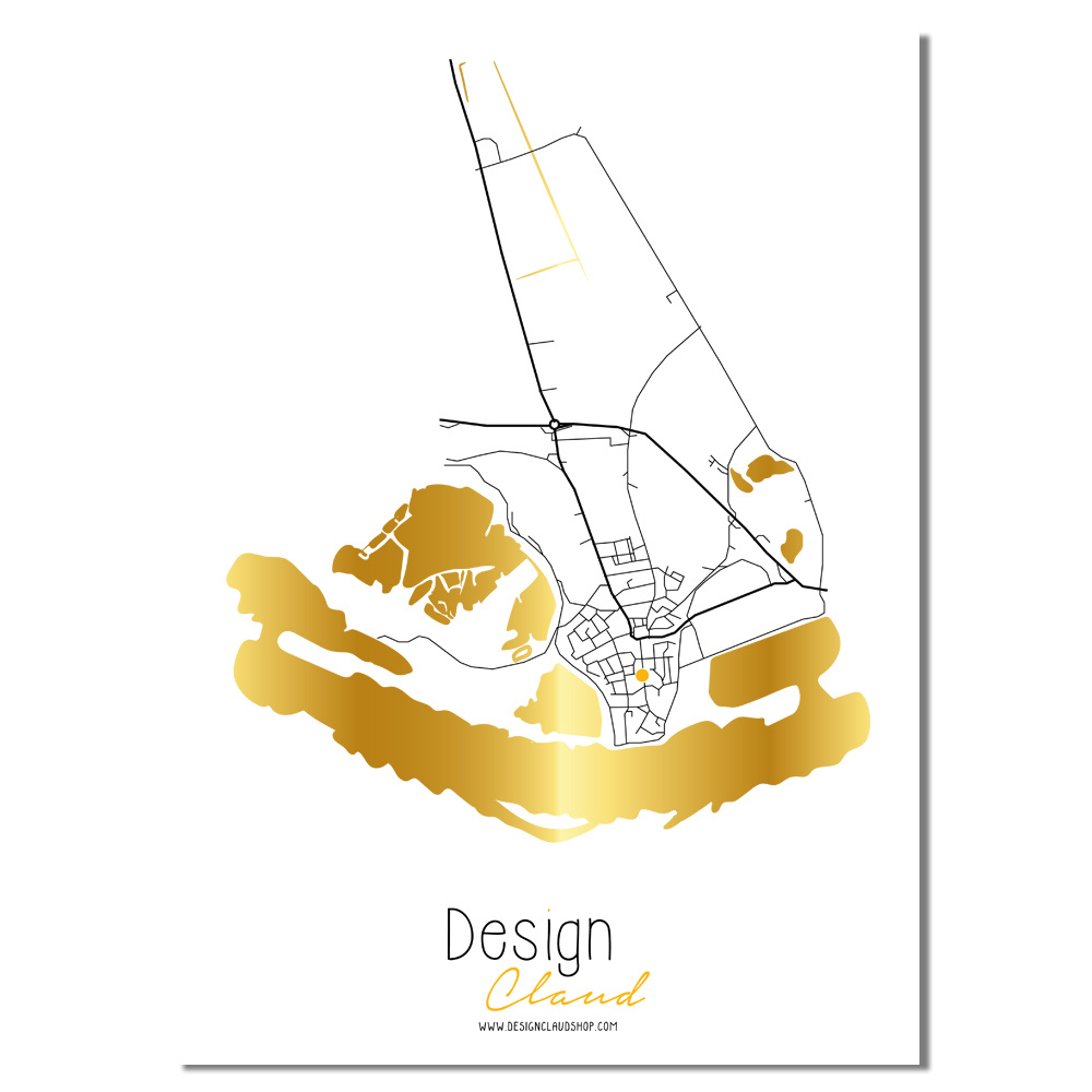 Ein einzigartiges Kartenposter Ihres Dorfes oder Ihrer Stadt in Gold-, Silber- oder Kupferfolie. Gestalten Sie das Poster nach Ihren eigenen Wünschen!