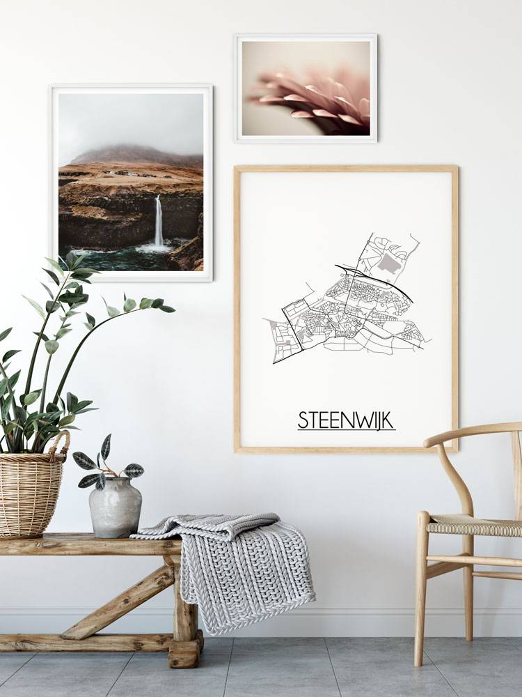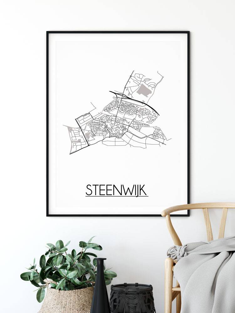 Der Innenraum kann farbig, neutral oder kontrastreich gestaltet werden. Es gibt unzählige Einrichtungsstile, aus denen wir wählen können. Welchen Stil Sie auch immer für den Urlaub wählen, ein Innenplakat einer Stadt oder eines Landes wird immer passen. Ein Plakat ist eine schöne Ergänzung des Interieurs und sorgt für eine schöne Wirkung und einen Blickfang im Raum. Dieses Stadtplan-poster von Steenwijk ist eine attraktive Wanddekoration zum Aufhängen in einem Rahmen neben anderen Wanddekorationen.