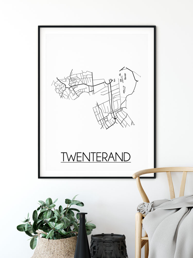 Der Innenraum kann farbig, neutral oder kontrastreich gestaltet werden. Es gibt unzählige Einrichtungsstile, aus denen wir wählen können. Welchen Stil Sie auch immer für den Urlaub wählen, ein Innenplakat einer Stadt oder eines Landes wird immer passen. Ein Plakat ist eine schöne Ergänzung des Interieurs und sorgt für eine schöne Wirkung und einen Blickfang im Raum. Dieses Stadtplan-poster von Twenterand ist eine attraktive Wanddekoration zum Aufhängen in einem Rahmen neben anderen Wanddekorationen.