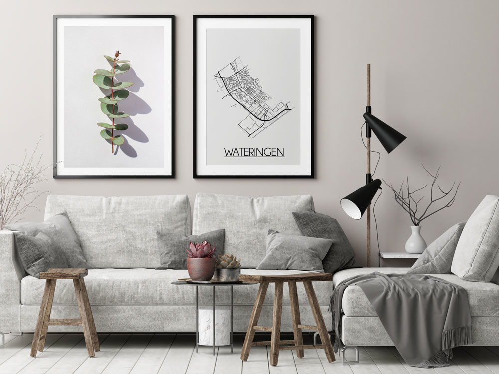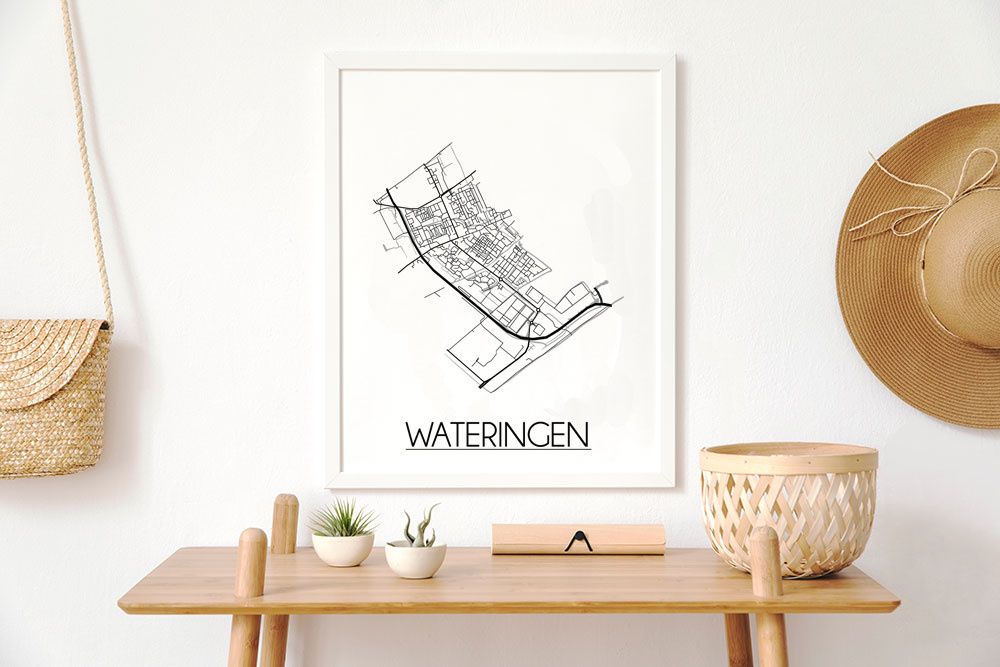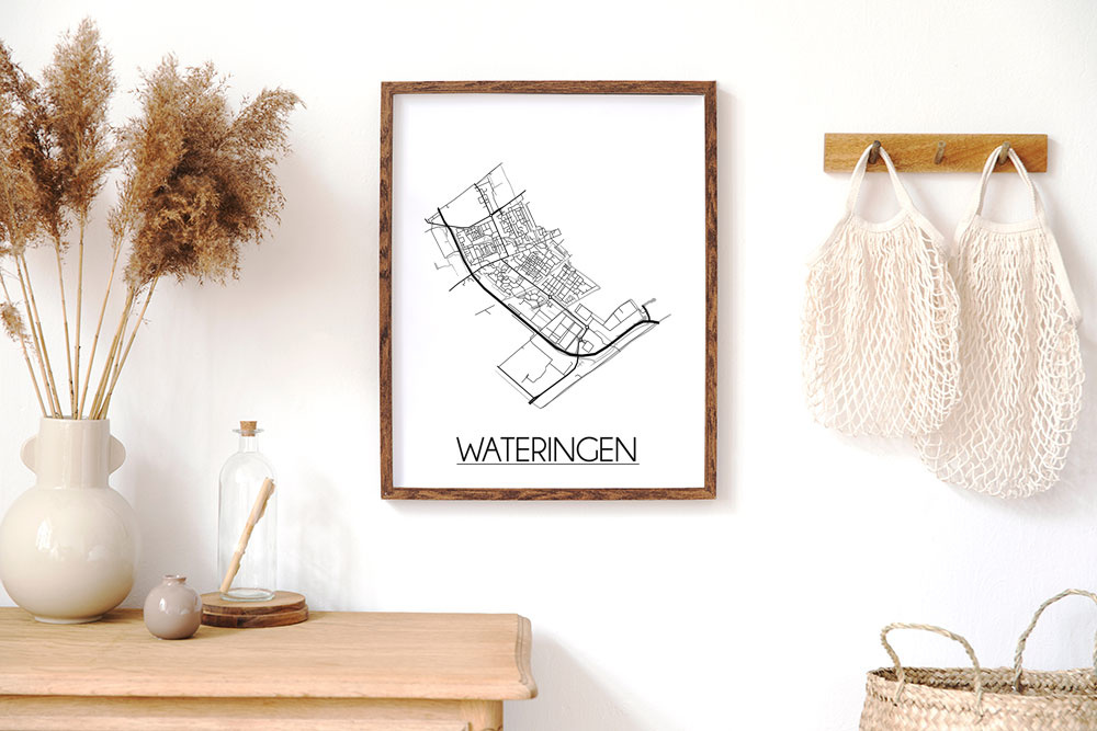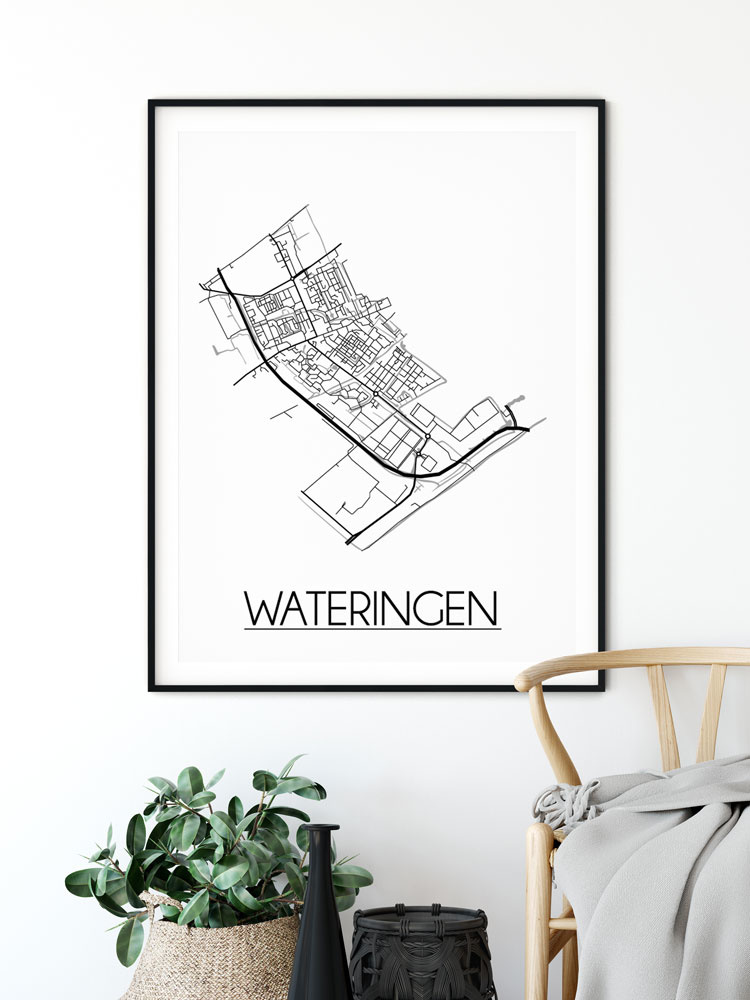 Der Innenraum kann farbig, neutral oder kontrastreich gestaltet werden. Es gibt unzählige Einrichtungsstile, aus denen wir wählen können. Welchen Stil Sie auch immer für den Urlaub wählen, ein Innenplakat einer Stadt oder eines Landes wird immer passen. Ein Plakat ist eine schöne Ergänzung des Interieurs und sorgt für eine schöne Wirkung und einen Blickfang im Raum. Dieses Stadtplan-poster von Wateringen ist eine attraktive Wanddekoration zum Aufhängen in einem Rahmen neben anderen Wanddekorationen.