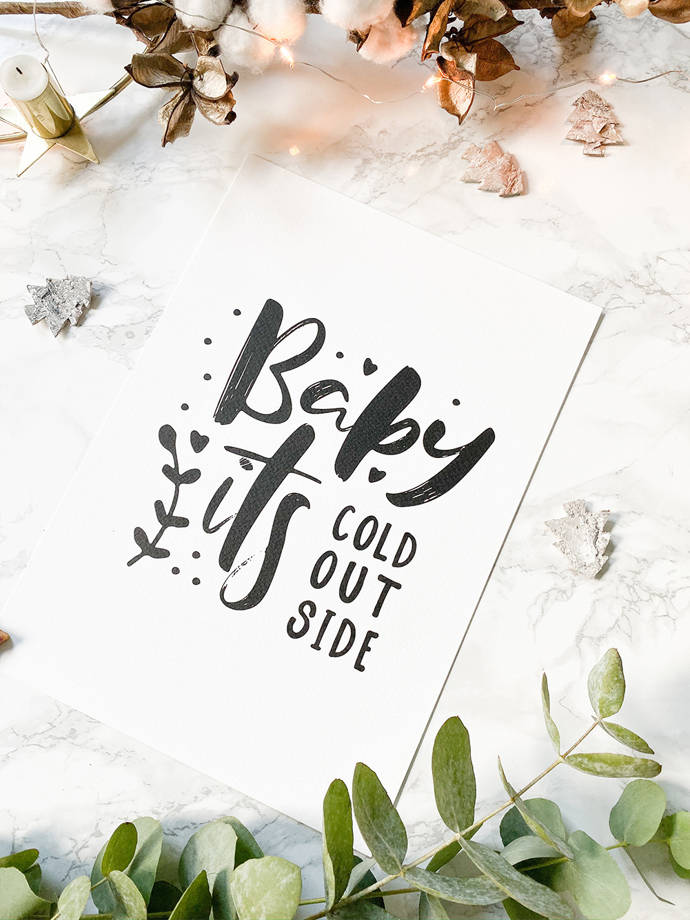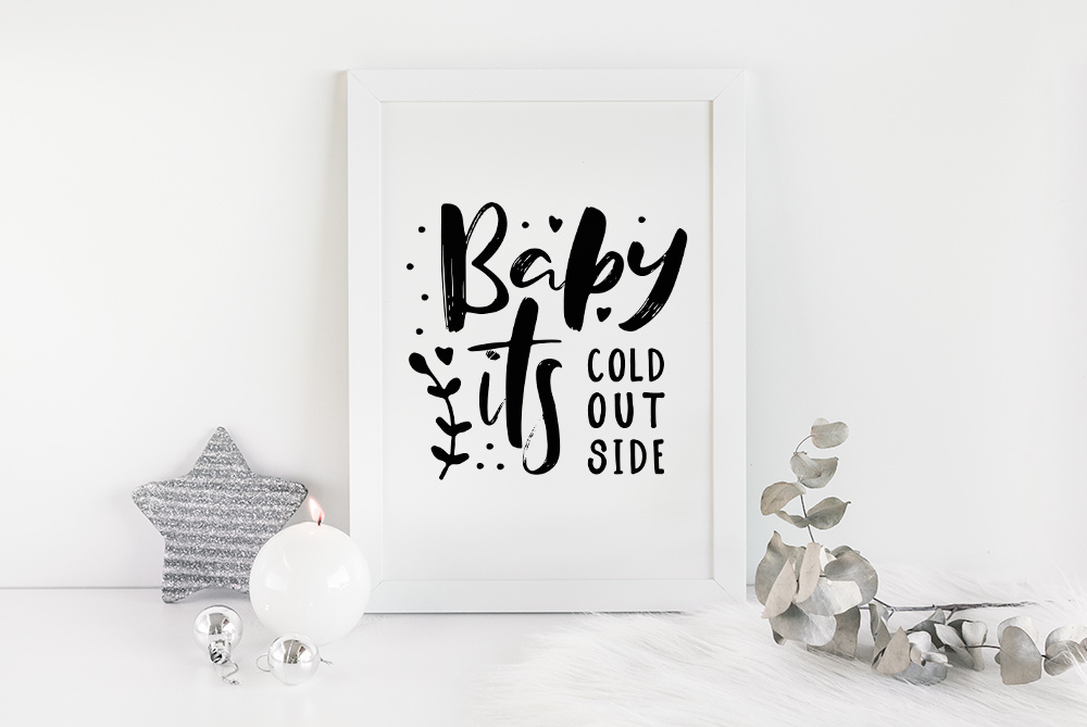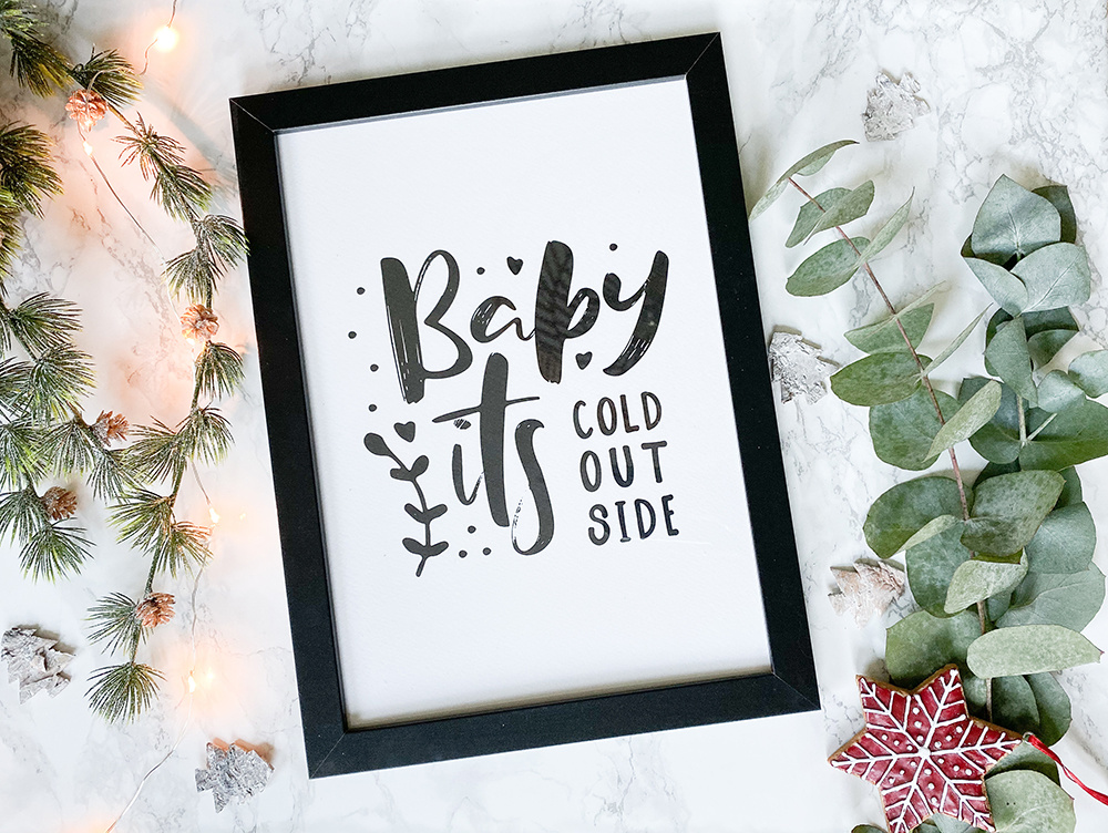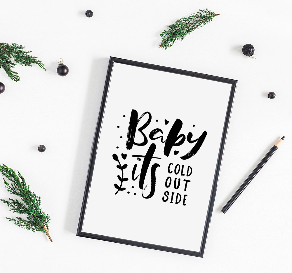 Weihnachtsposter Baby it's cold outside - Weihnachtsdekoration Schwarz-Weiß