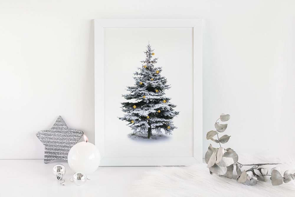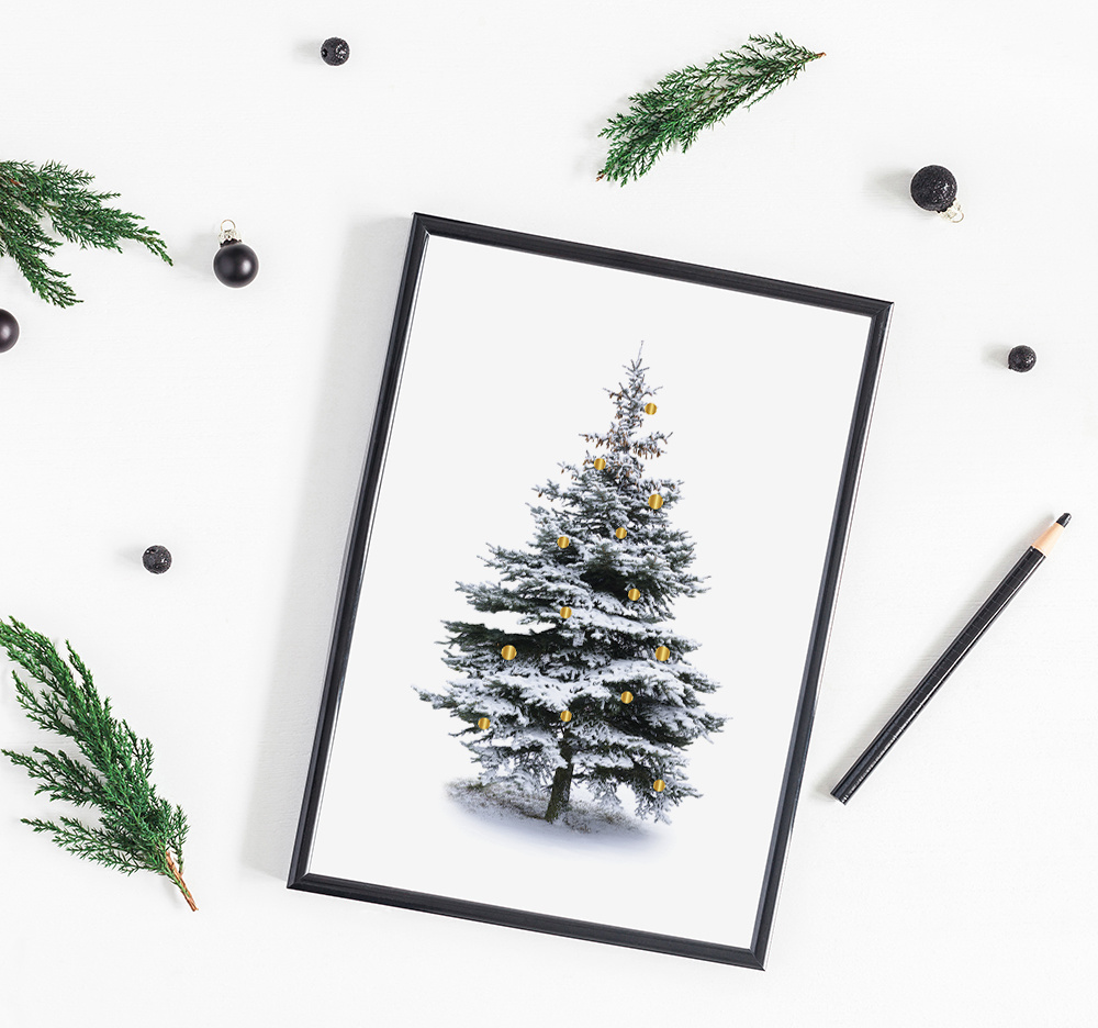 Weihnachtsposter Weihnachtsbaum Gold Weihnachtskugeln