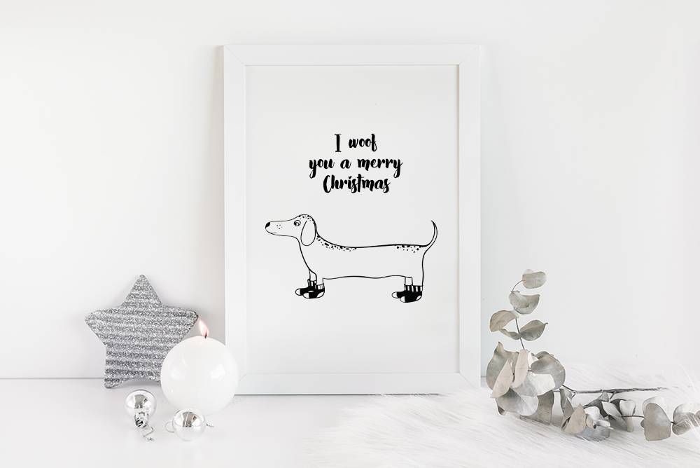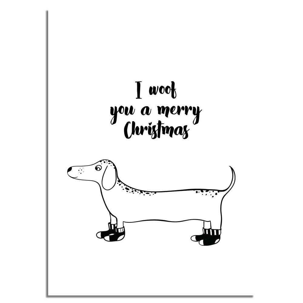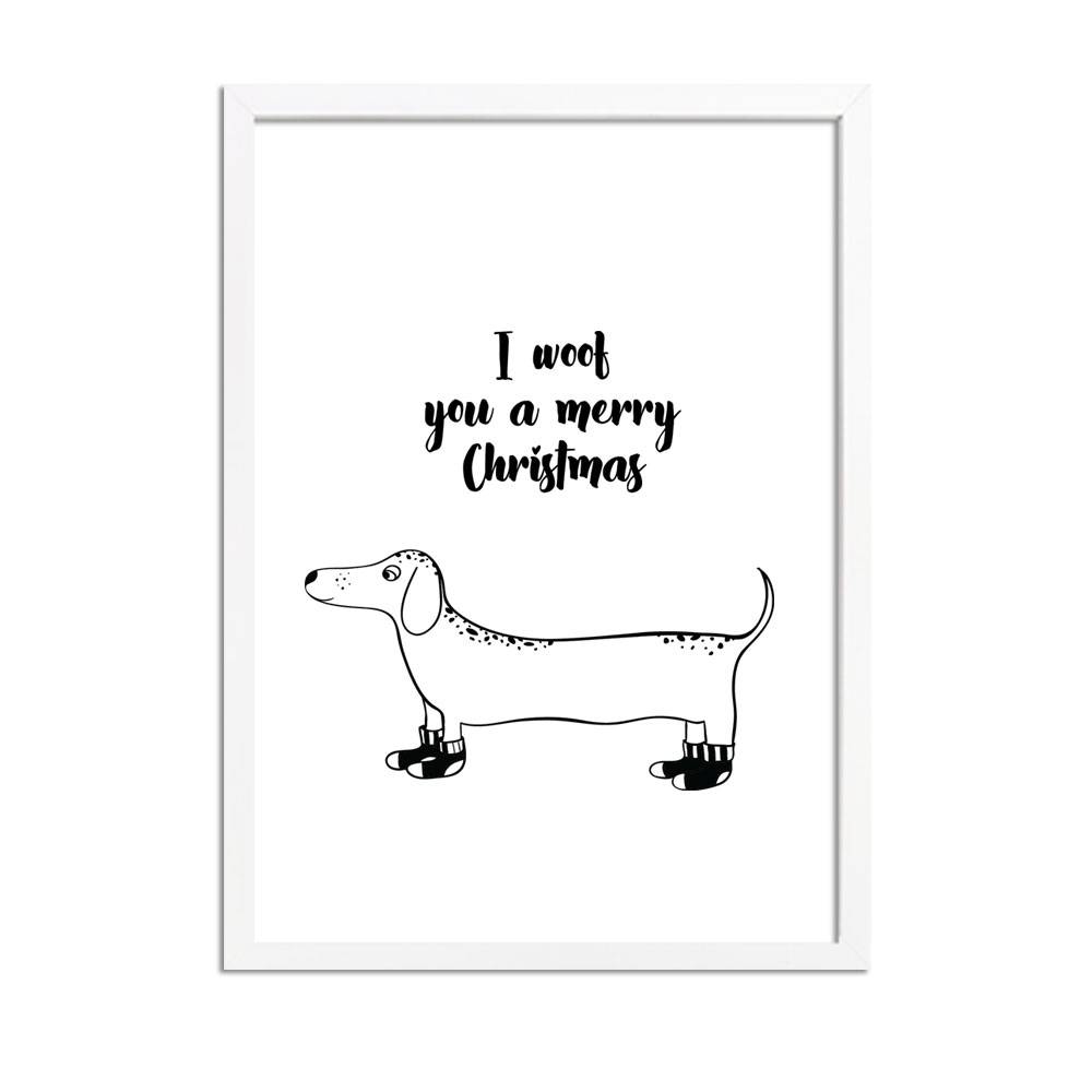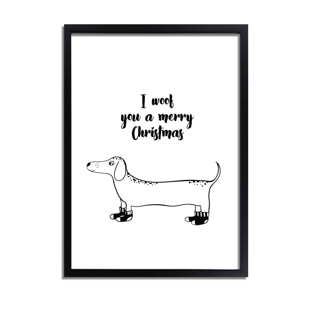 Weihnachtsposter I you woof a merry Christmas - Weihnachtsdekoration - Schwarz-Weiß