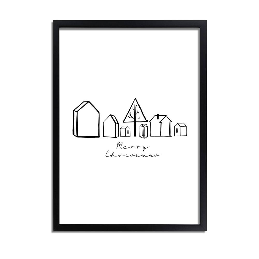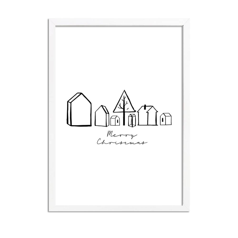 Weihnachtsposter Merry Christmas Häuser - Weihnachtsdekoration Schwarz weiß