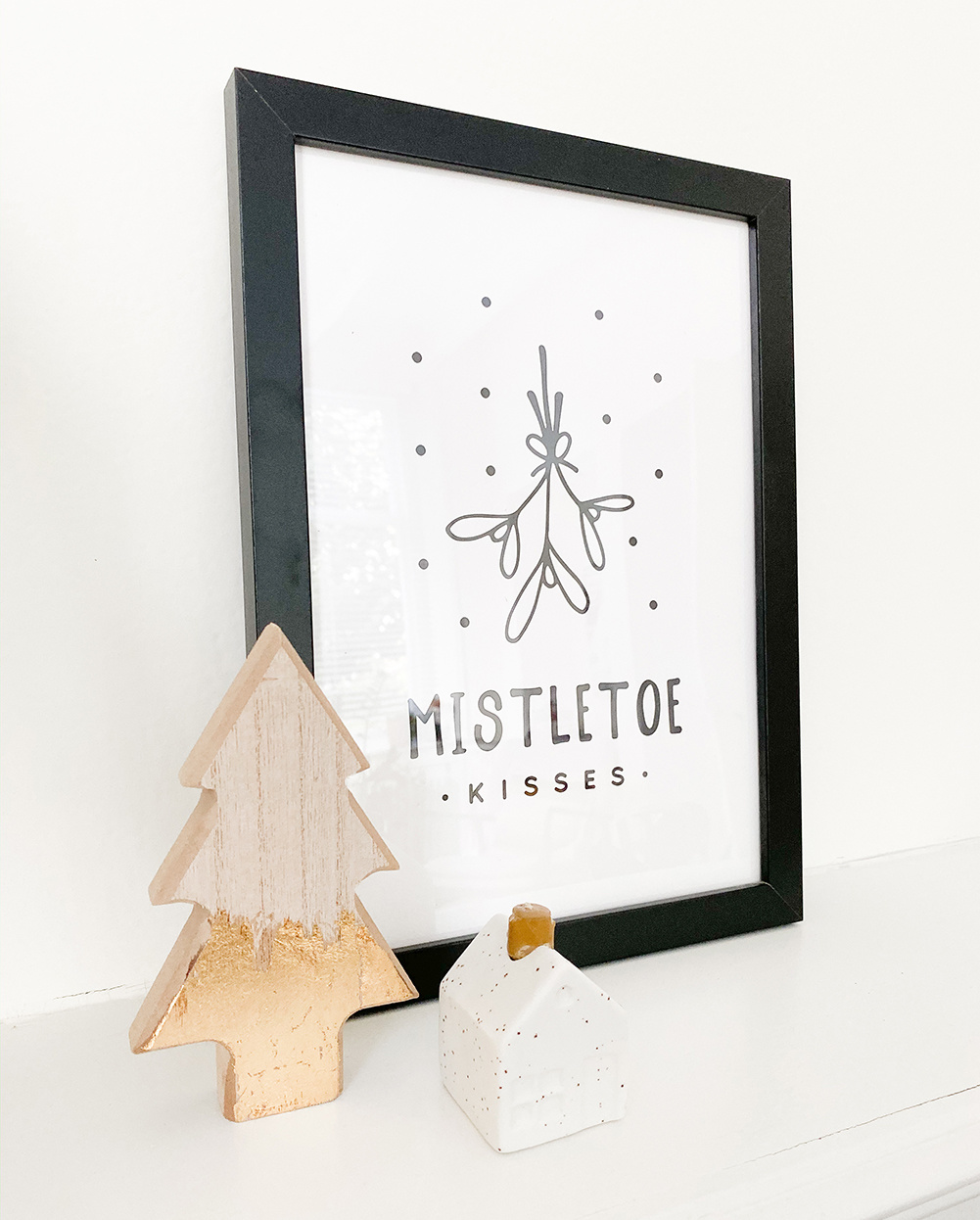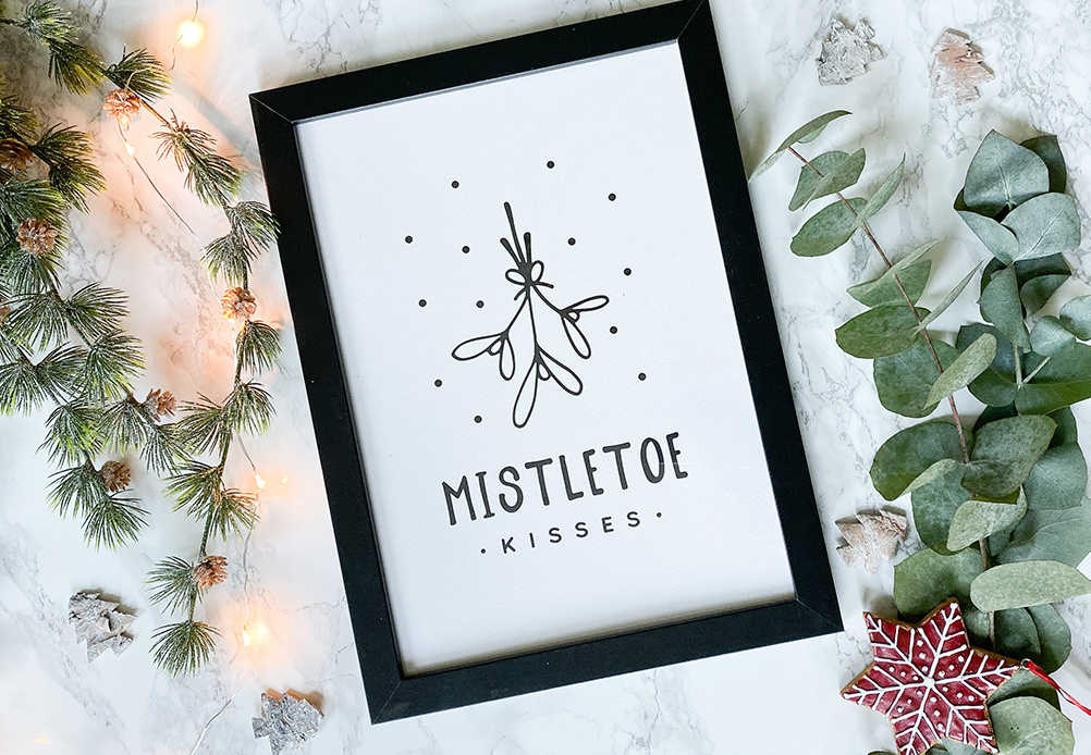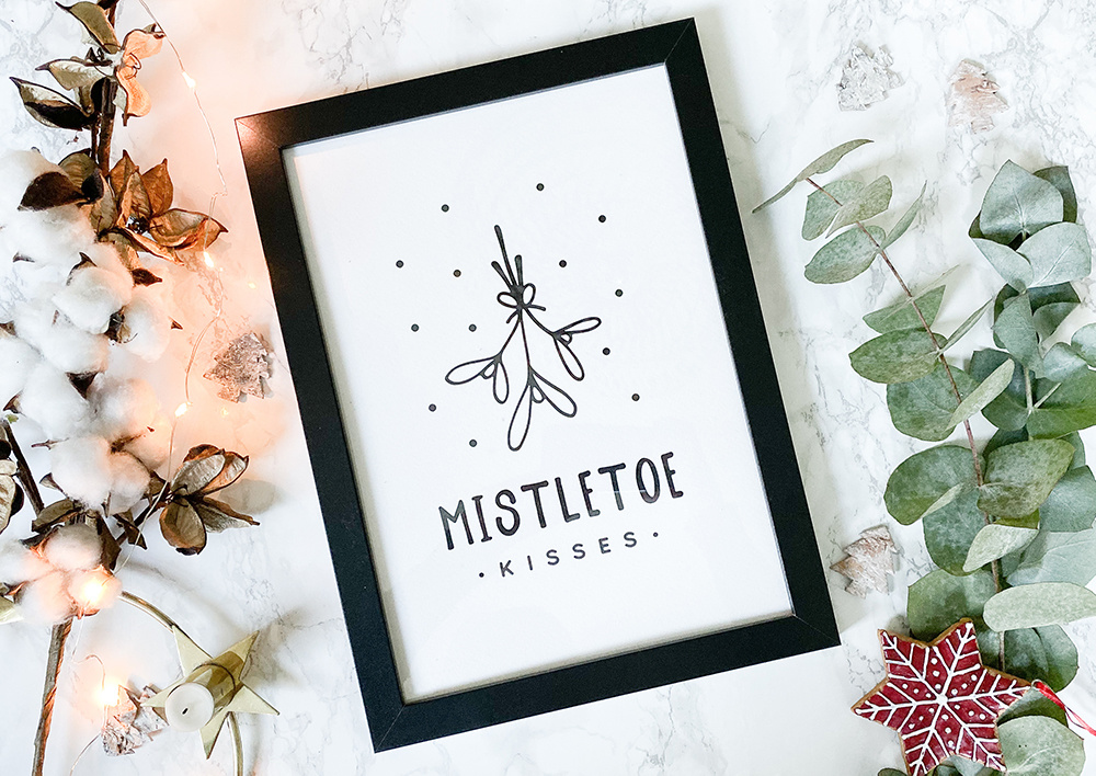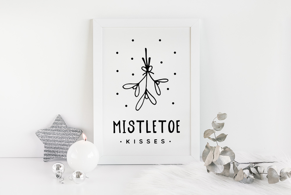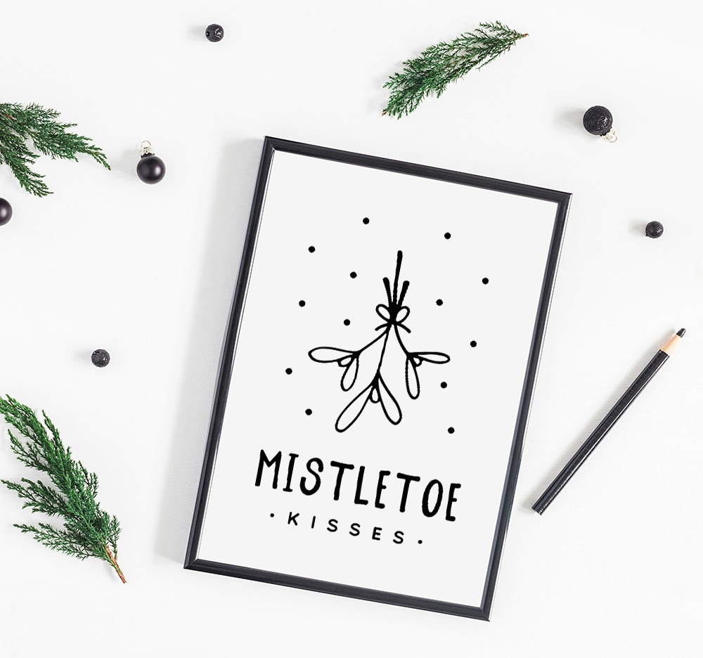 Weihnachtsposter Mistletoe - Weihnachtsdekoration Schwarz-Weiß