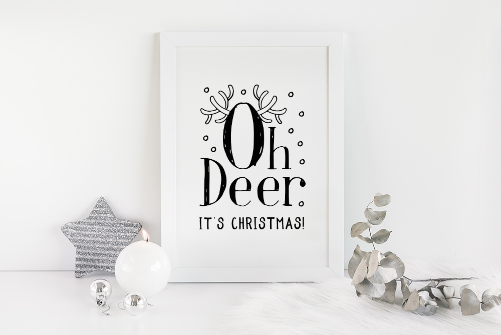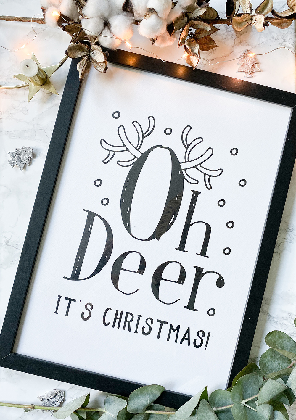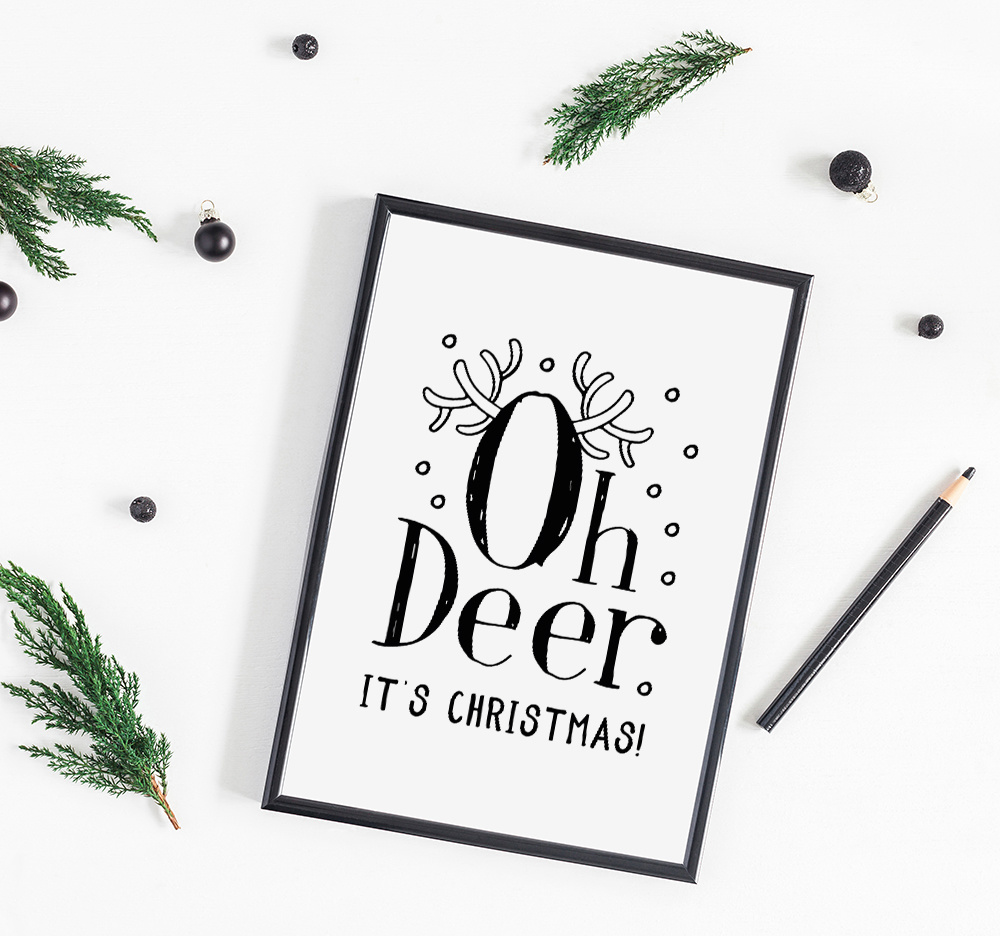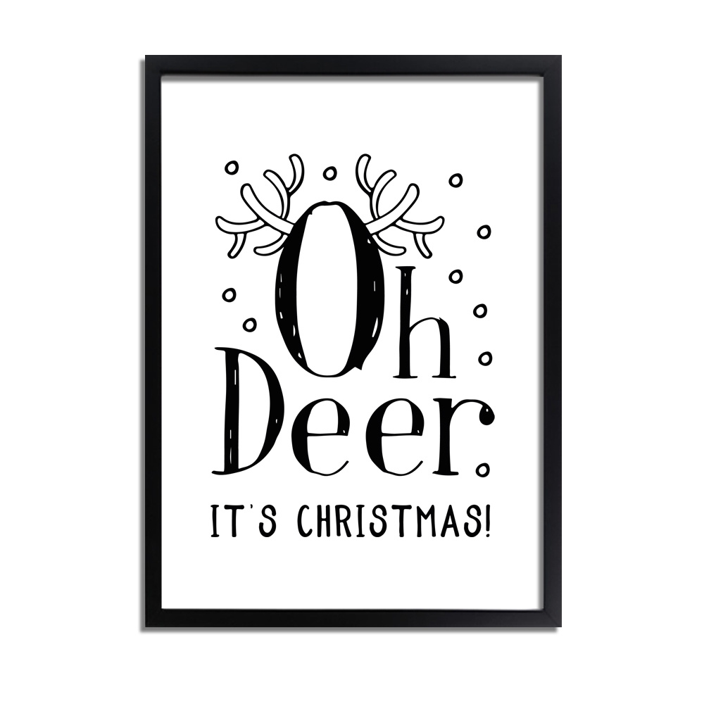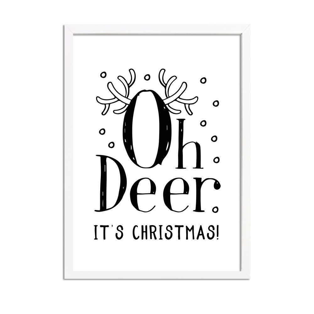 Weihnachtsposter Oh Deer It's Christmas - Weihnachtsdekoration Schwarz-Weiß