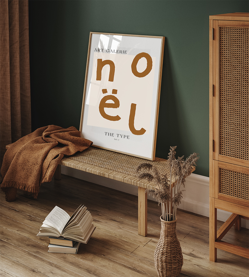 Dekoration des weihnachtlichen Interieurs mit einem Weihnachtsposter