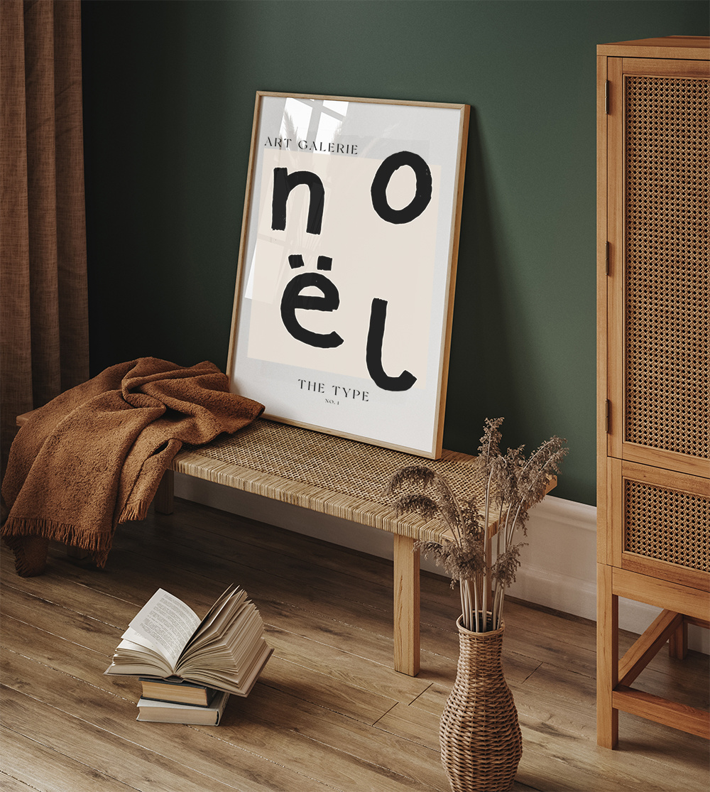 Dekoration des weihnachtlichen Interieurs mit einem Weihnachtsposter