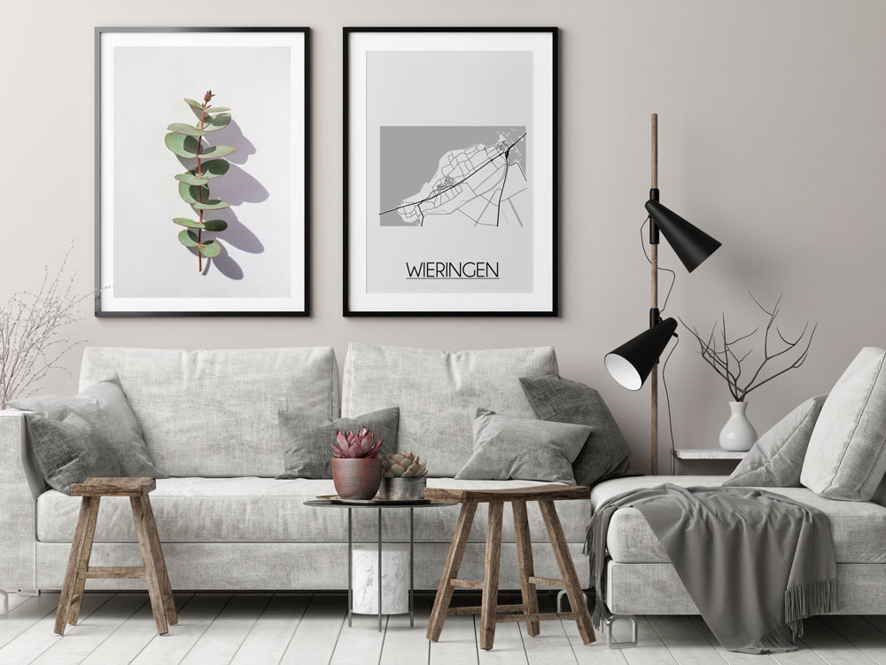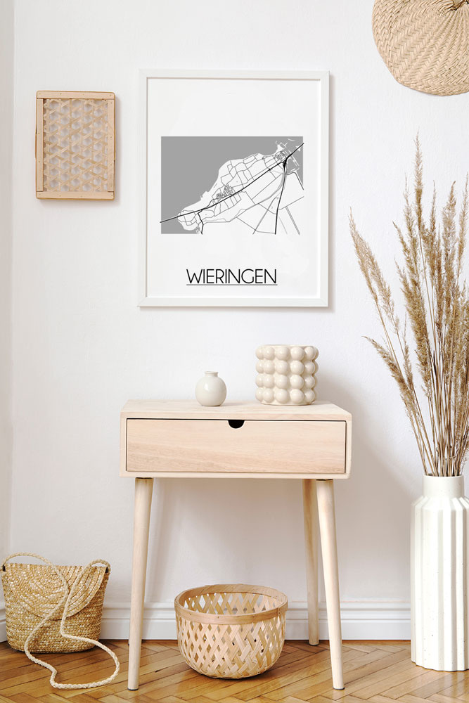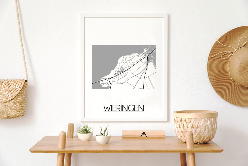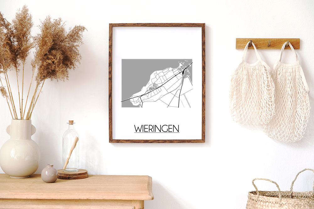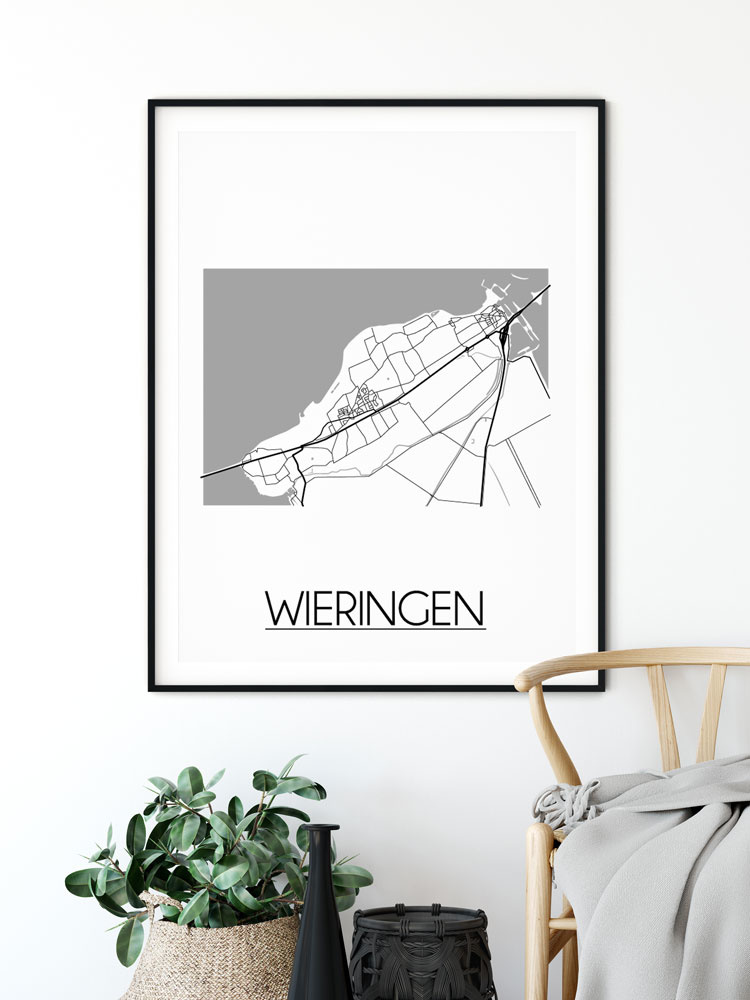 Der Innenraum kann farbig, neutral oder kontrastreich gestaltet werden. Es gibt unzählige Einrichtungsstile, aus denen wir wählen können. Welchen Stil Sie auch immer für den Urlaub wählen, ein Innenplakat einer Stadt oder eines Landes wird immer passen. Ein Plakat ist eine schöne Ergänzung des Interieurs und sorgt für eine schöne Wirkung und einen Blickfang im Raum. Dieses Stadtplan-poster von Wieringen ist eine attraktive Wanddekoration zum Aufhängen in einem Rahmen neben anderen Wanddekorationen.