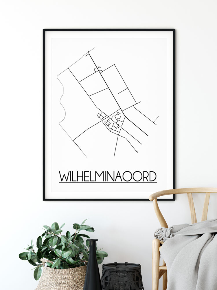 Der Innenraum kann farbig, neutral oder kontrastreich gestaltet werden. Es gibt unzählige Einrichtungsstile, aus denen wir wählen können. Welchen Stil Sie auch immer für den Urlaub wählen, ein Innenplakat einer Stadt oder eines Landes wird immer passen. Ein Plakat ist eine schöne Ergänzung des Interieurs und sorgt für eine schöne Wirkung und einen Blickfang im Raum. Dieses Stadtplan-poster von Wilhelminaoord ist eine attraktive Wanddekoration zum Aufhängen in einem Rahmen neben anderen Wanddekorationen.