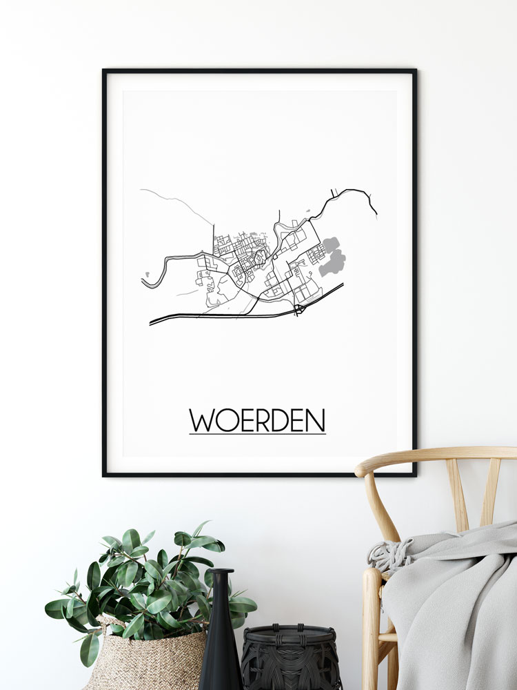 Der Innenraum kann farbig, neutral oder kontrastreich gestaltet werden. Es gibt unzählige Einrichtungsstile, aus denen wir wählen können. Welchen Stil Sie auch immer für den Urlaub wählen, ein Innenplakat einer Stadt oder eines Landes wird immer passen. Ein Plakat ist eine schöne Ergänzung des Interieurs und sorgt für eine schöne Wirkung und einen Blickfang im Raum. Dieses Stadtplan-poster von Woerden ist eine attraktive Wanddekoration zum Aufhängen in einem Rahmen neben anderen Wanddekorationen.