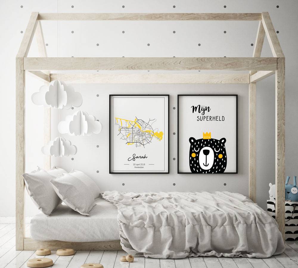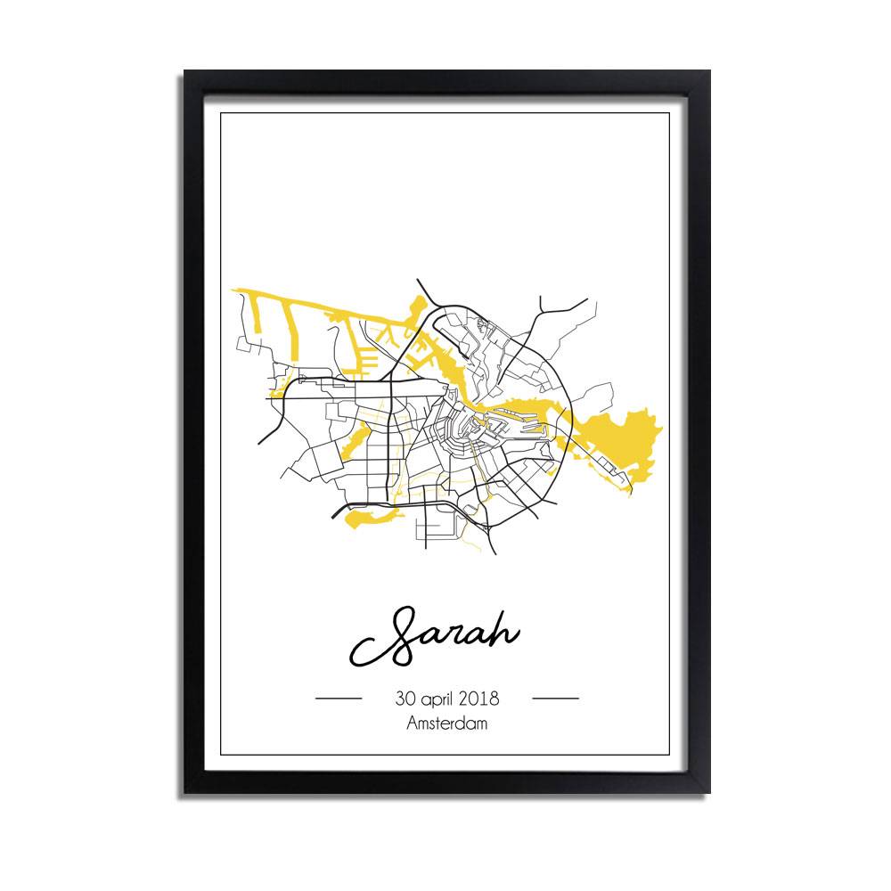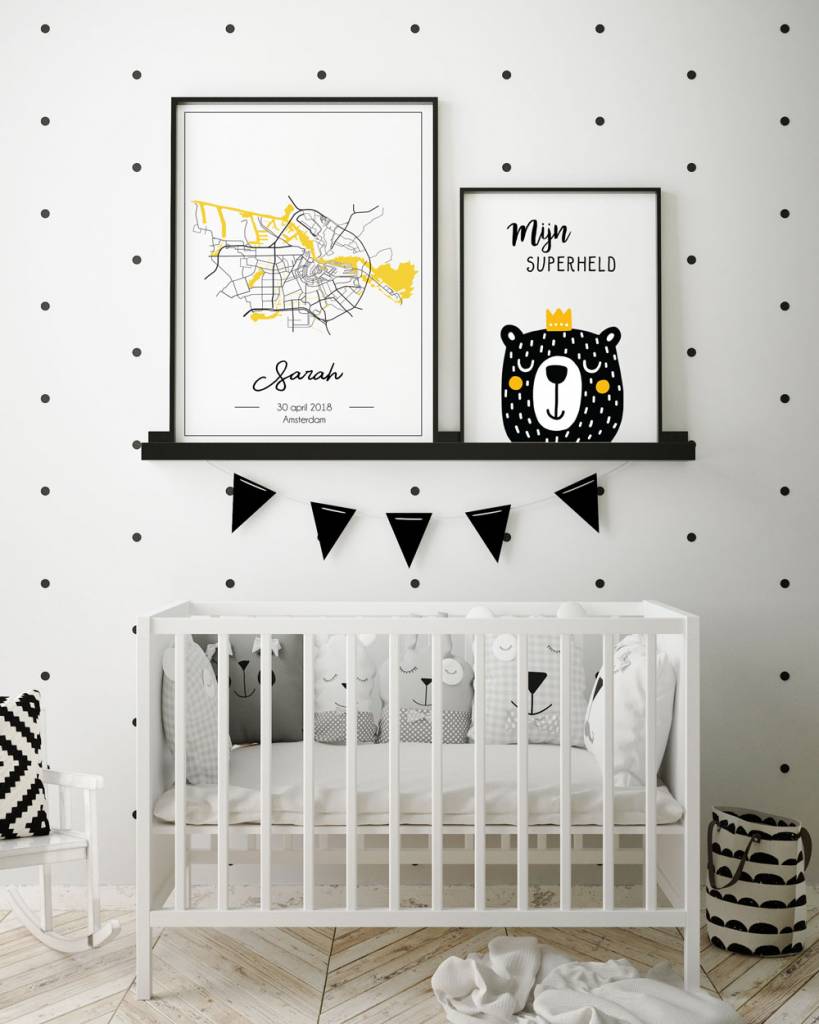 A birth poster is a unique and personal gift. A lovely and original baby shower gift, but also a lovely gift for yourself. This birth poster features a city map of the birthplace, the date of birth, the name, and of course, the birthplace.