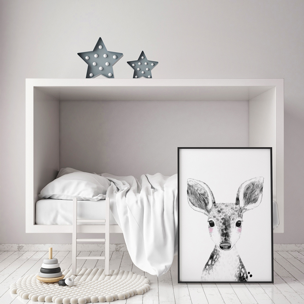 Volg het hertje naar een wereld vol dromen. Deze poster van een konijn in je kamer. Een mooi cadeau om te geven én om te krijgen!